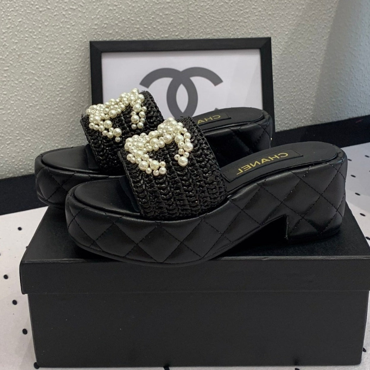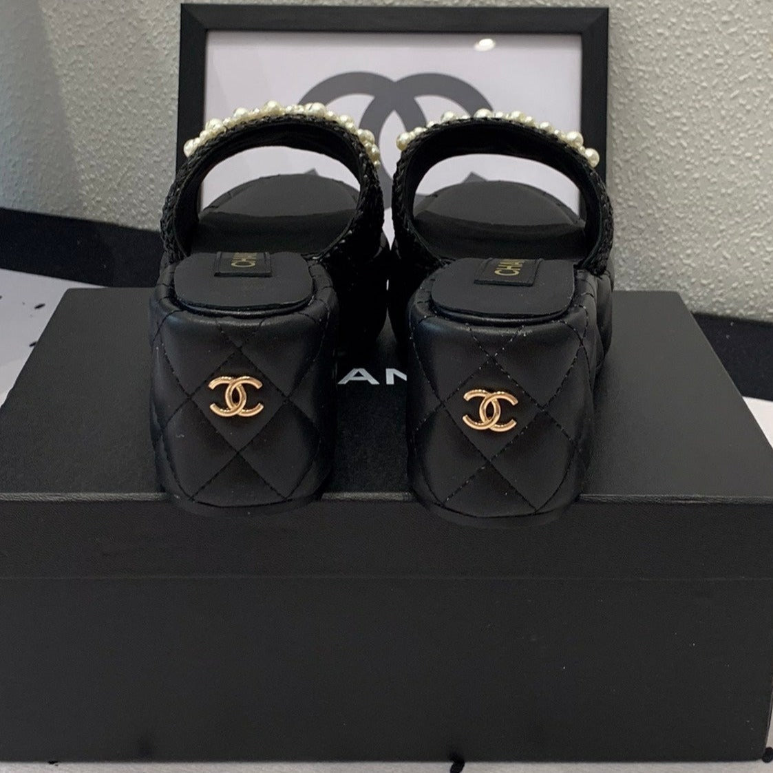 cc pearl platform sandals black lambkin
