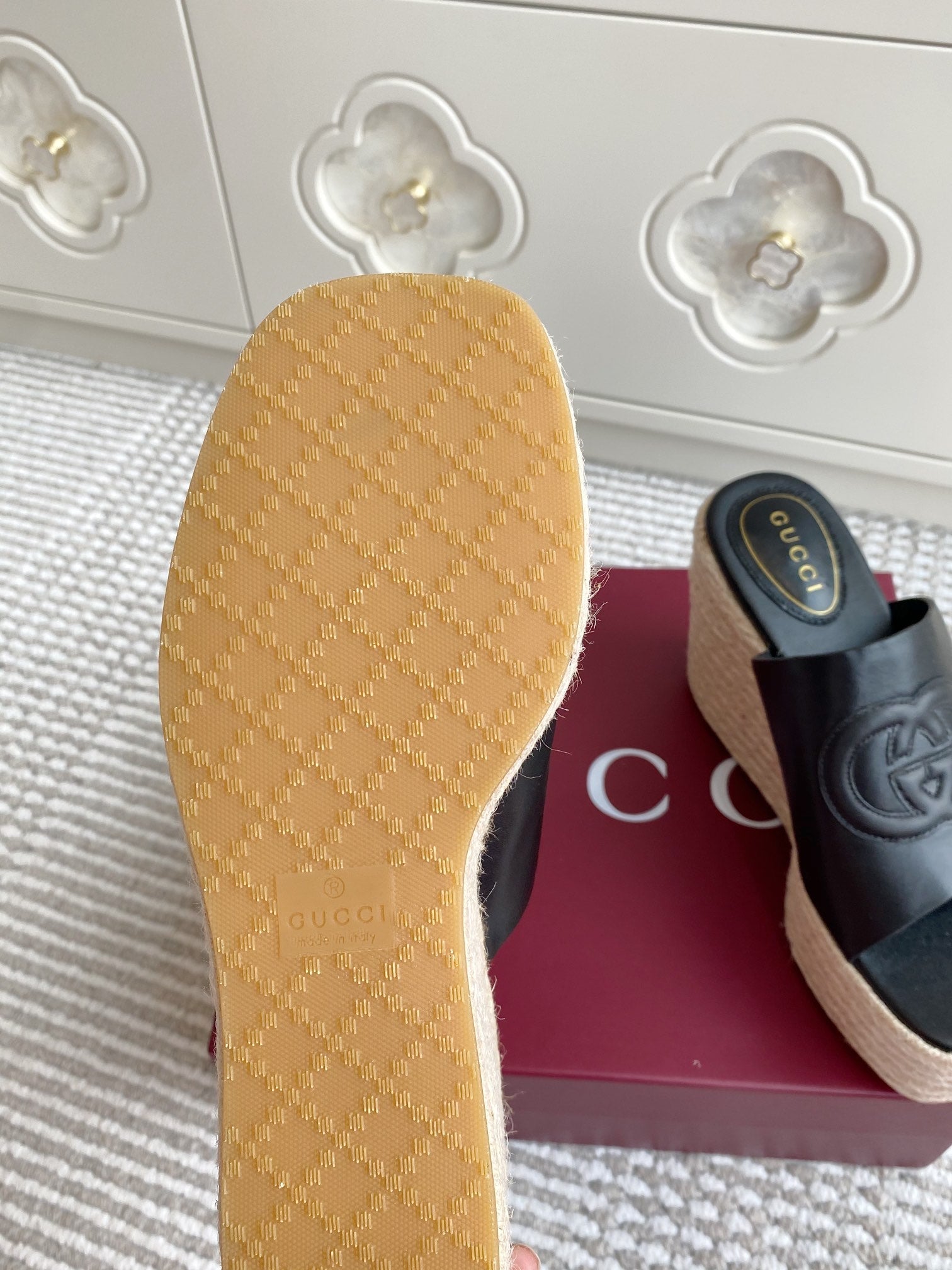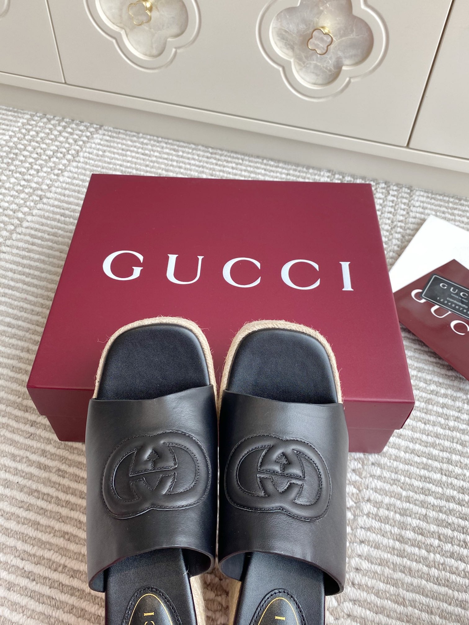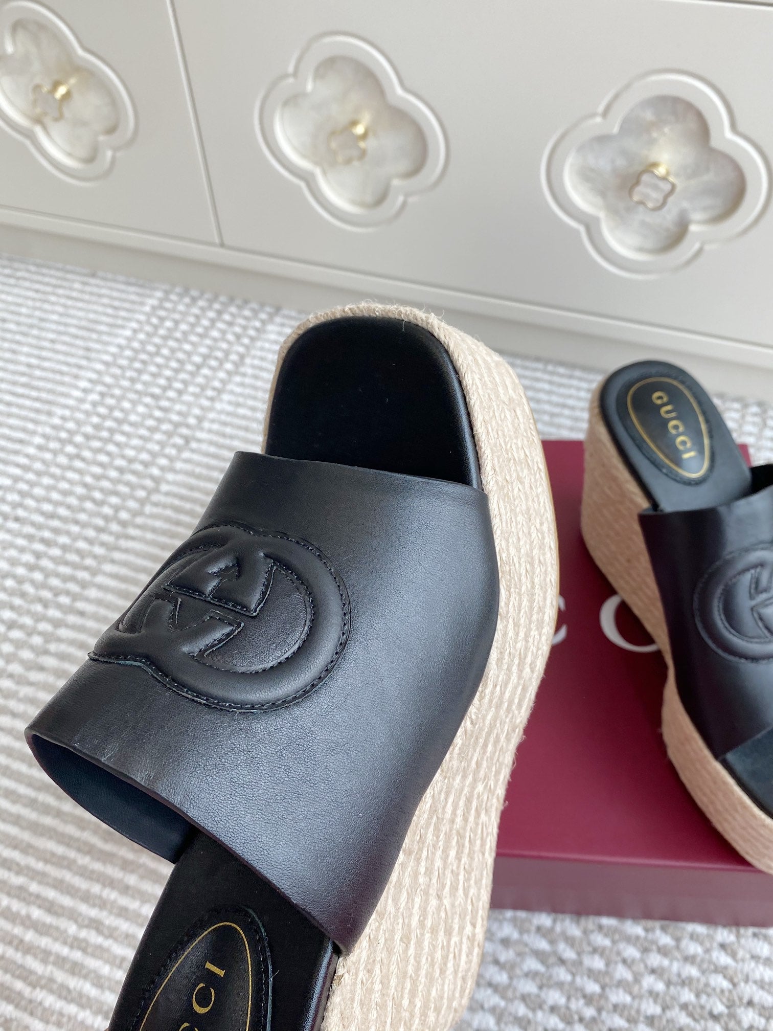 GC 25 Interlocking G Sandal Black Cord Cowhide 291031