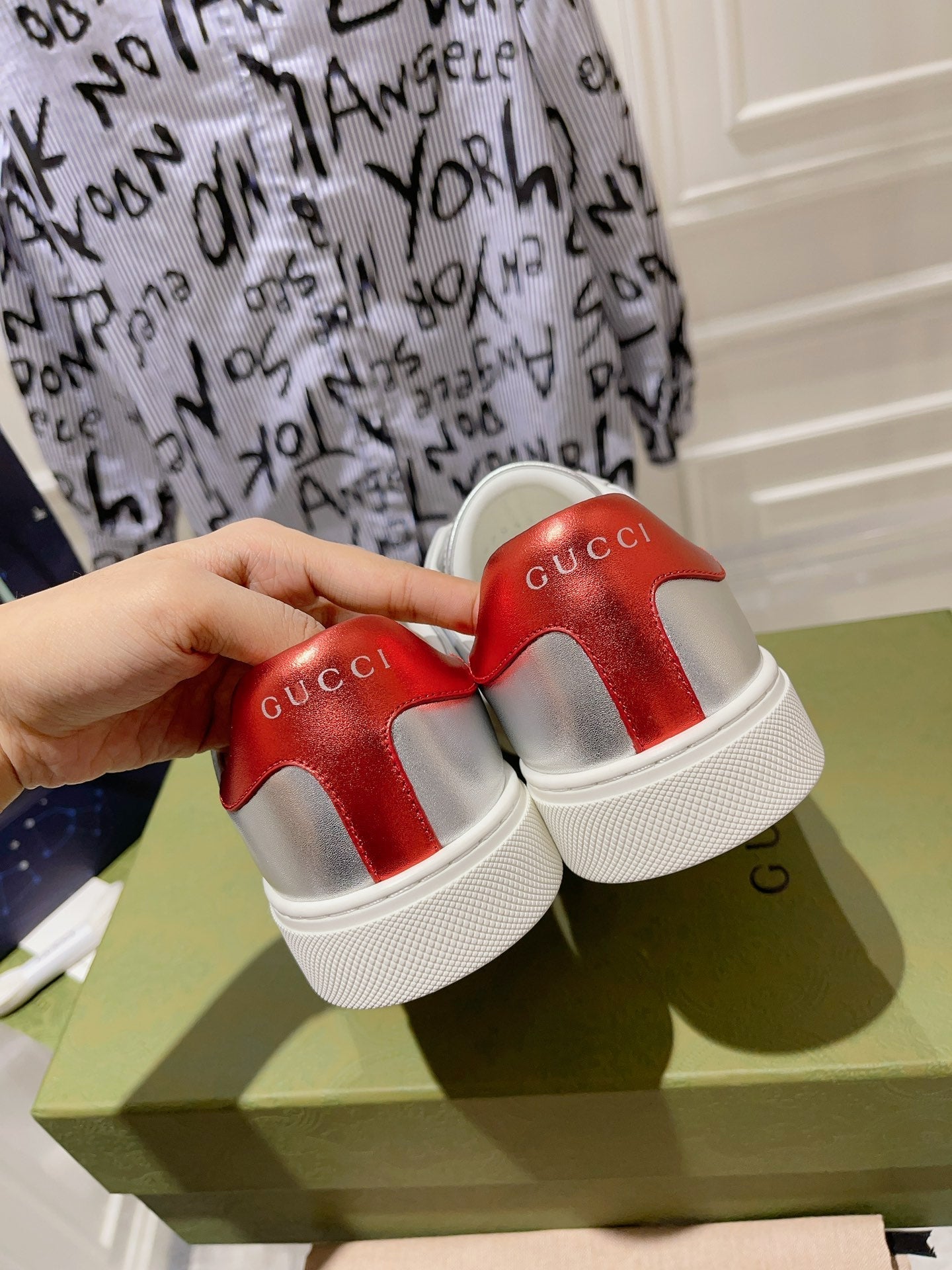 GG ACE GG SUPREME TRAINER SILVER CALFSKIN