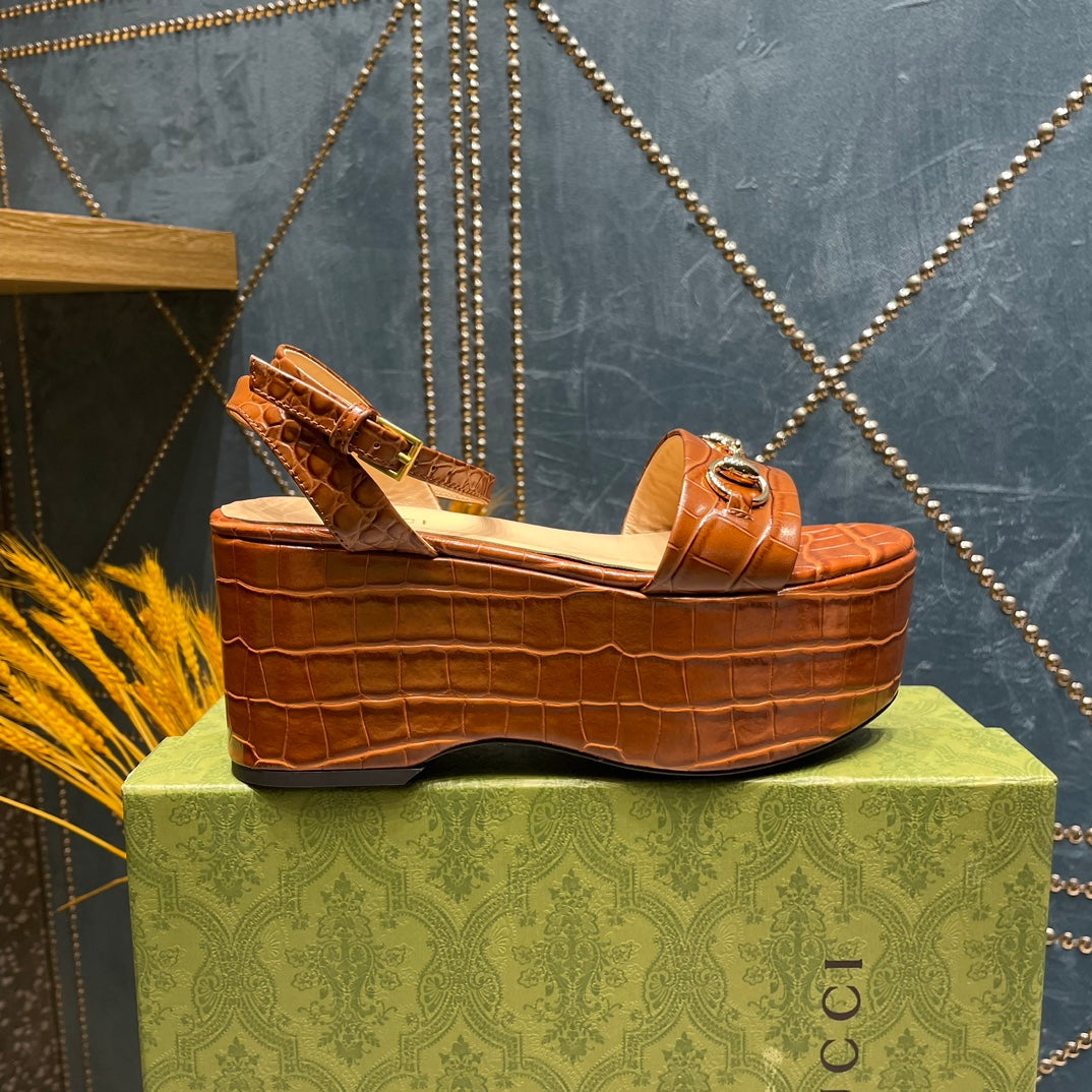 GG HORSEBIT FLATFORM SANDAL CARAMEL CALFSKIN