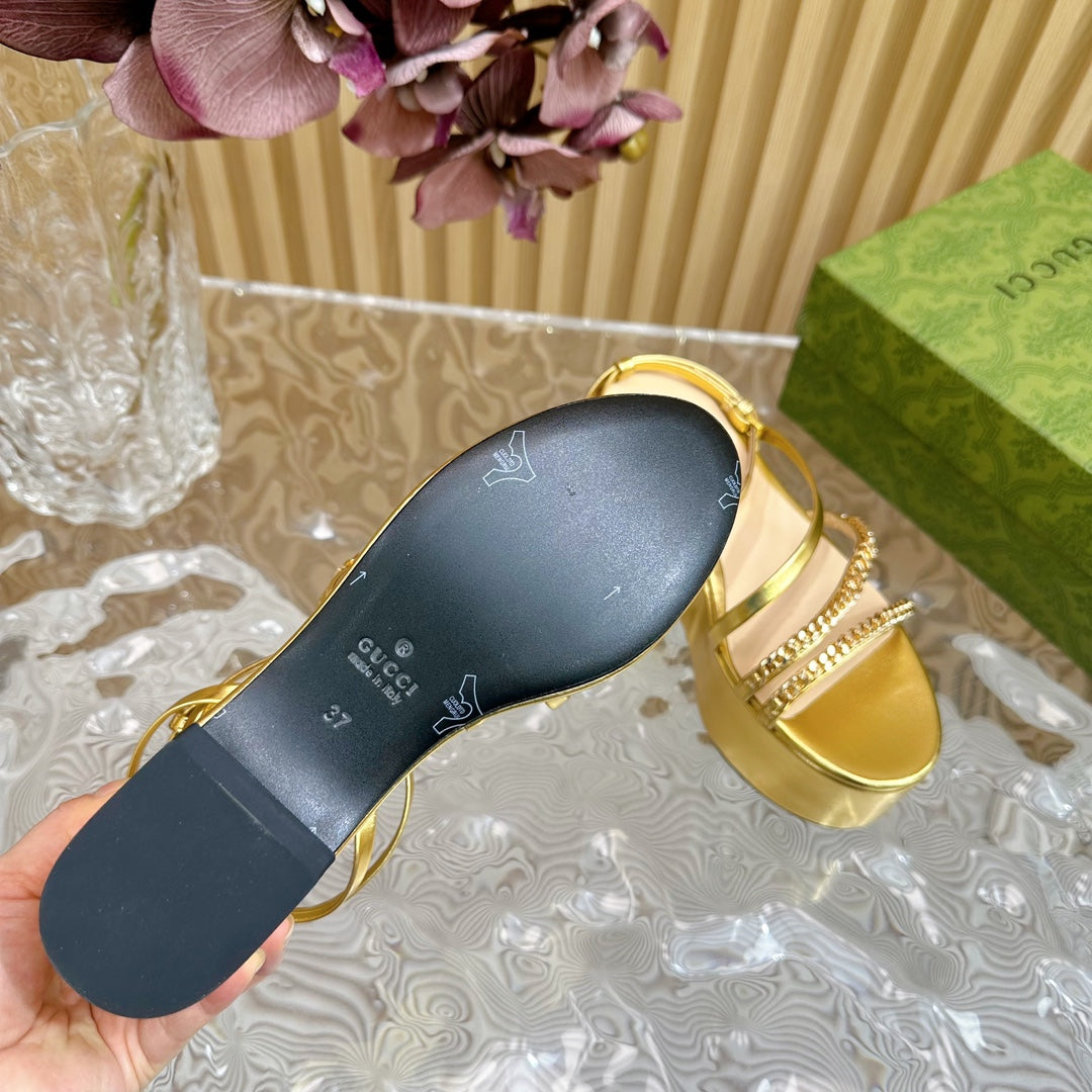 GG PLATFORM SANDAL METALLIC GOLD CALFSKIN WITH CHAINS