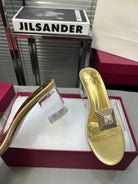 Heeled Sandals 6cm with Crystal Square Buckle Gold