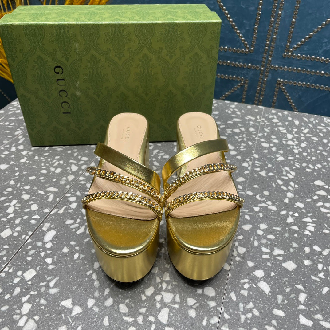 HIGH WEDGE PLATFORM IN GOLD CALFSKIN WITH GOLD HARDWARE