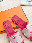 HM 25 Oran Sandal Dark Red Calfskin White Denim