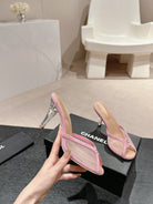mule sandal 75 pink fabric dark beige calfskin