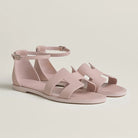 - Material: Sandal in calfskin with straight cut edges, "H" cut-out detail and thin ankle strap.