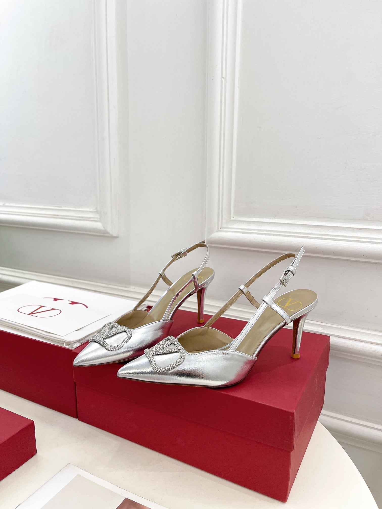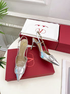 Vlogo Signature Diamond Slingback Pump Silver Calfskin