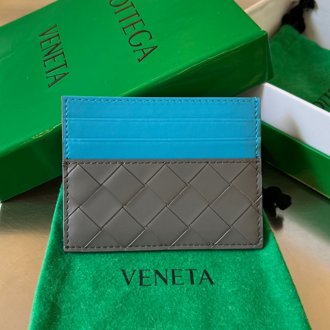 BV Credit Card Case Gray Blue Intrecciato Leather