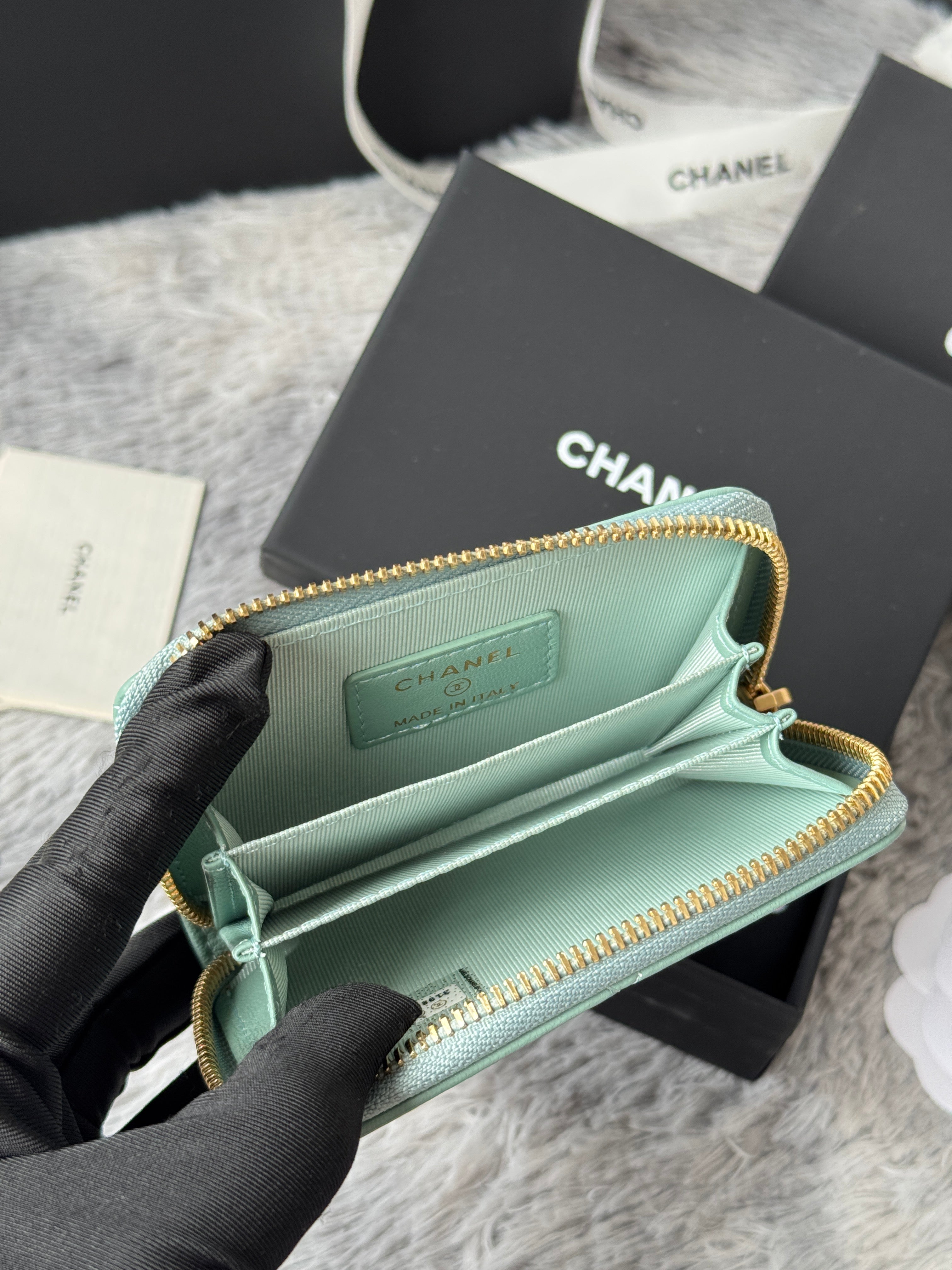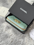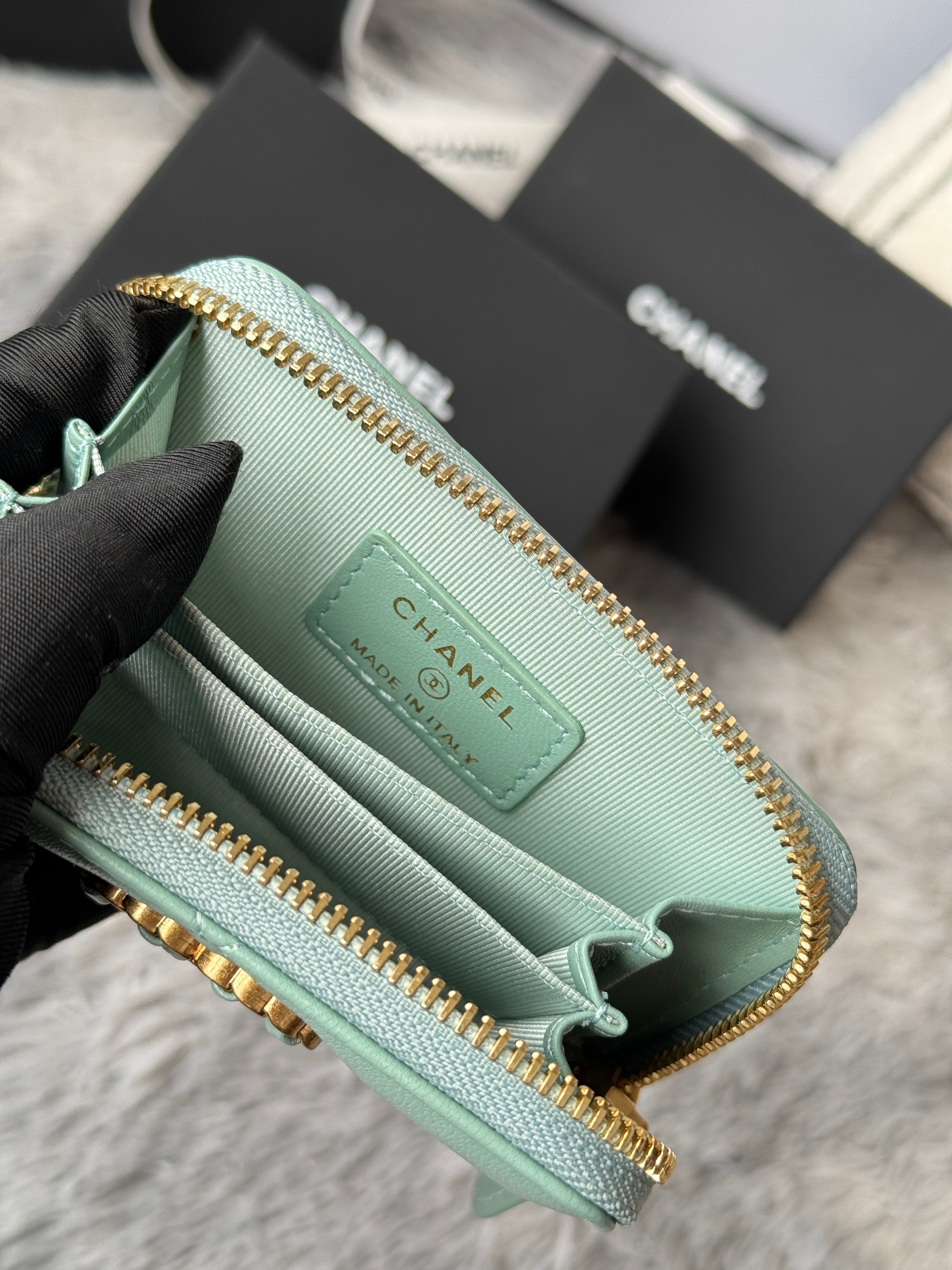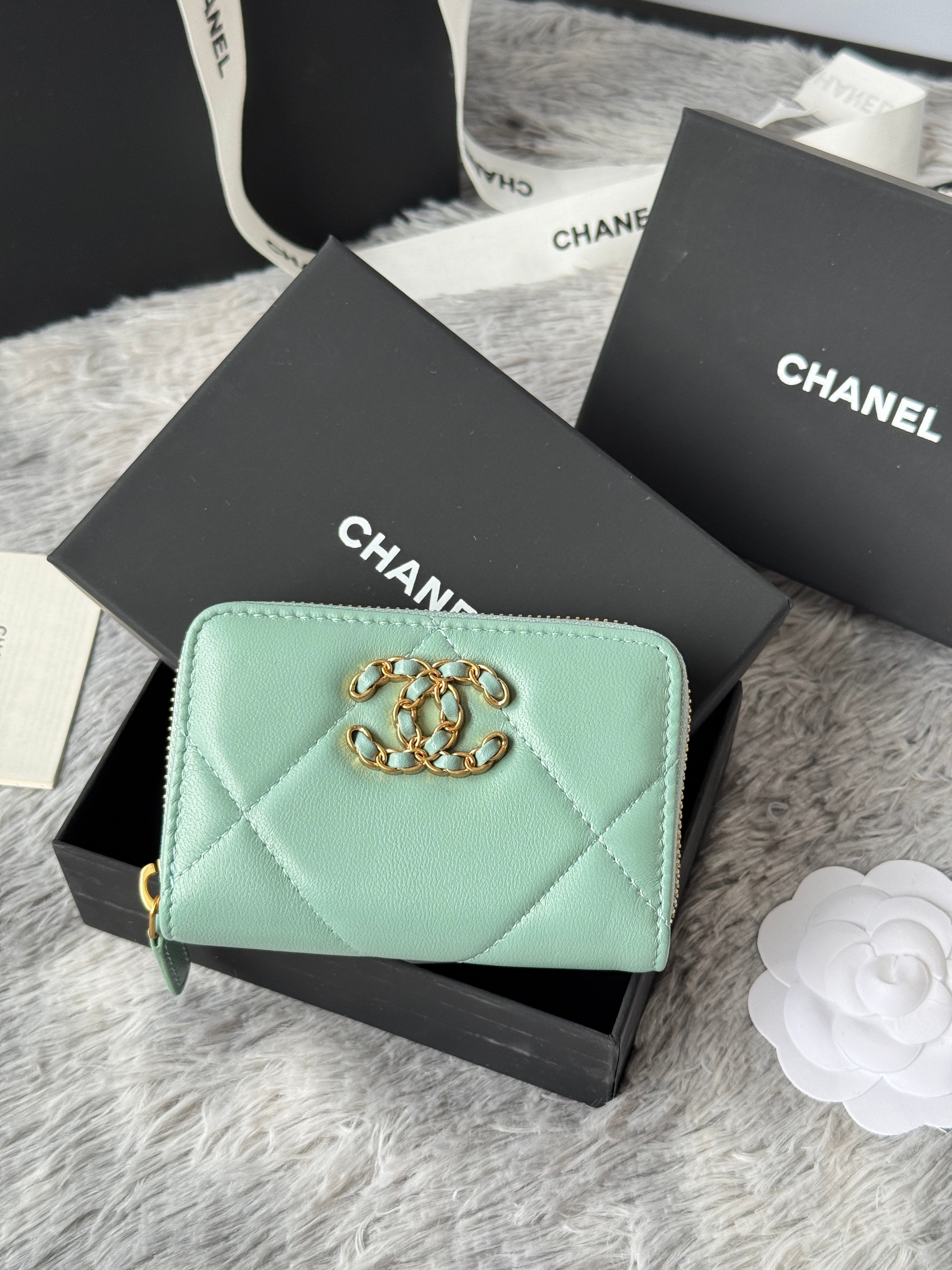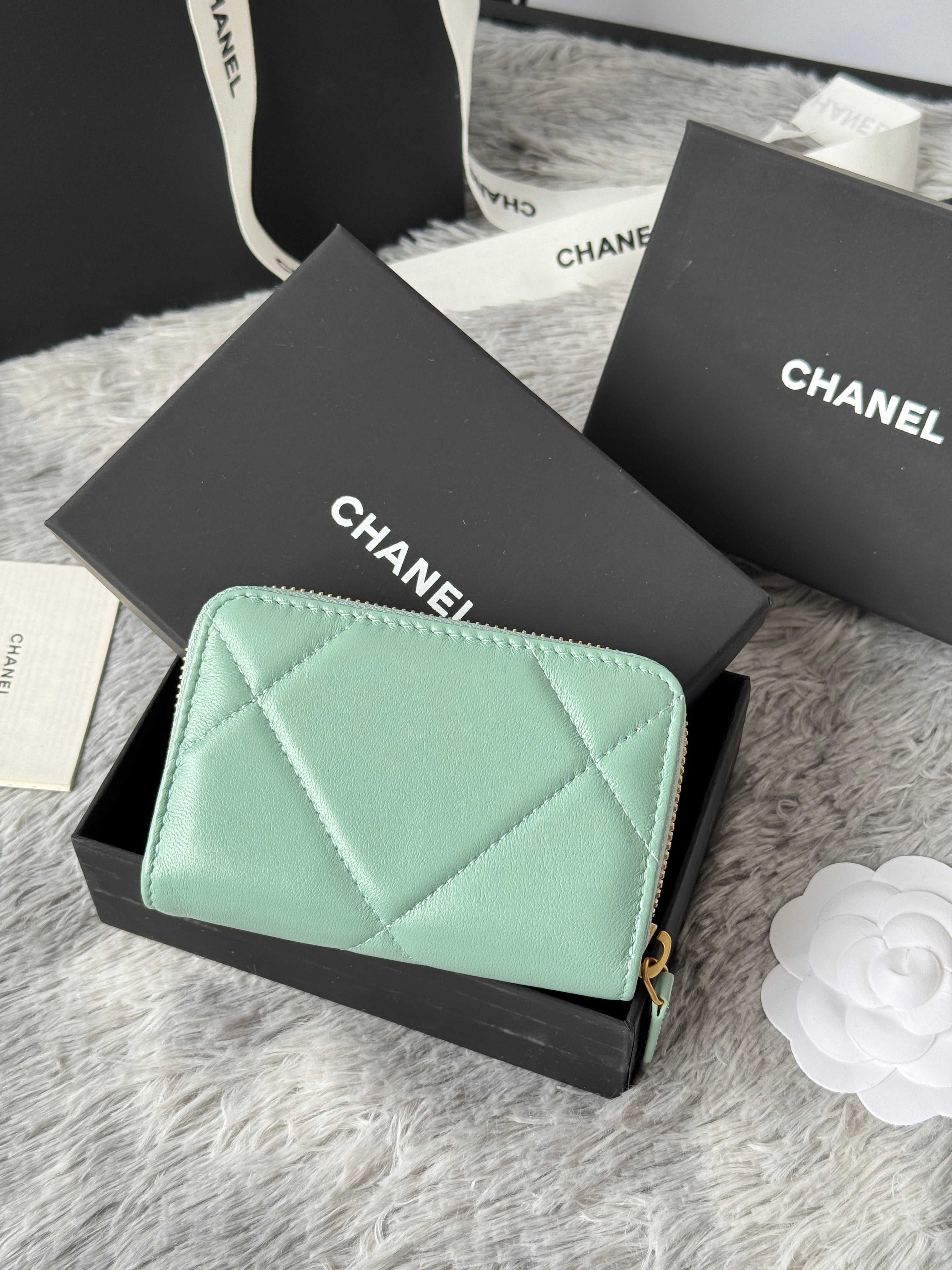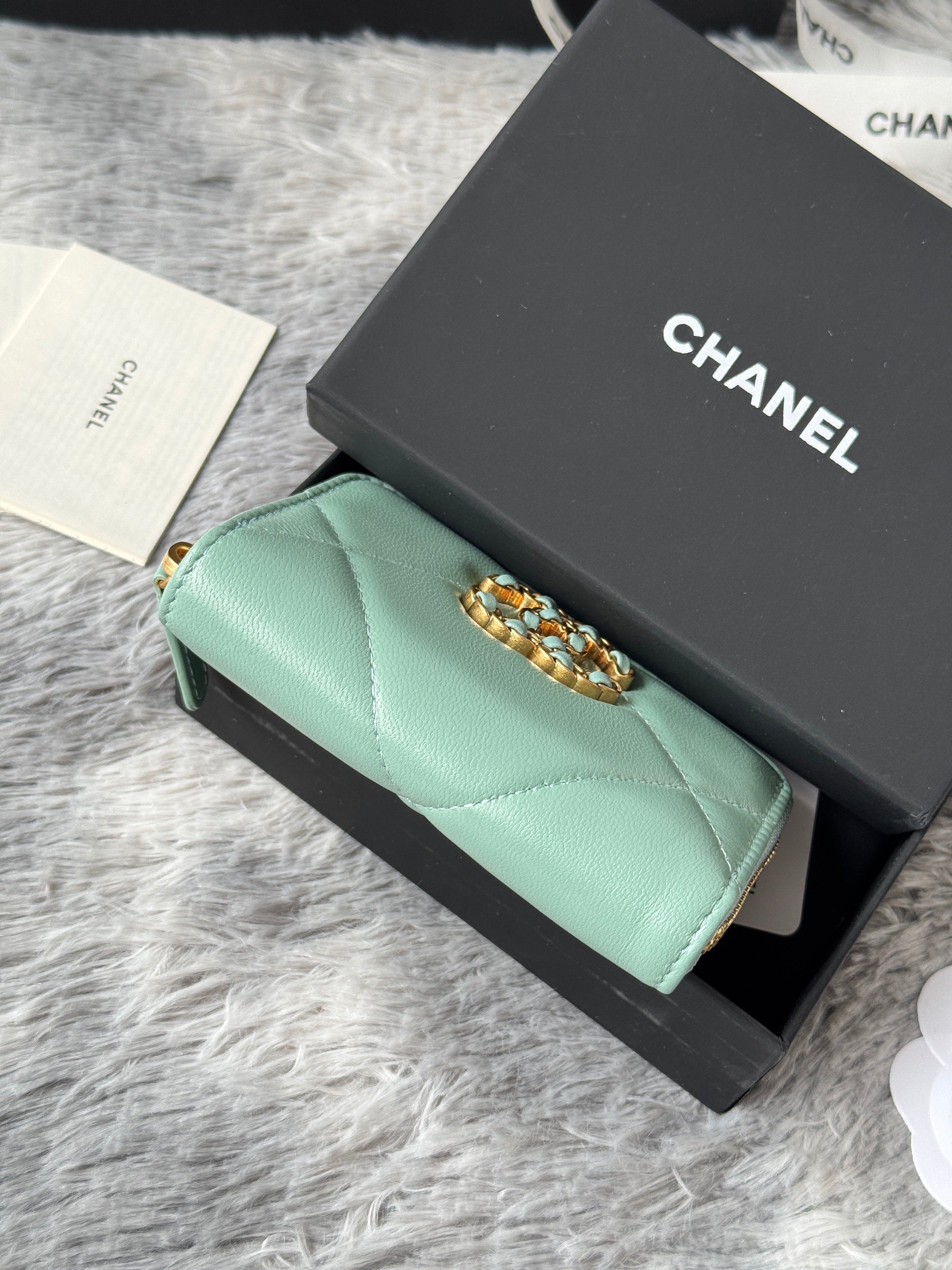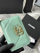 CC 19 Quilted Zipper Coin Purse Mint Green Gold-Tone Sheepskin 242804
