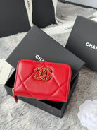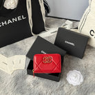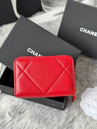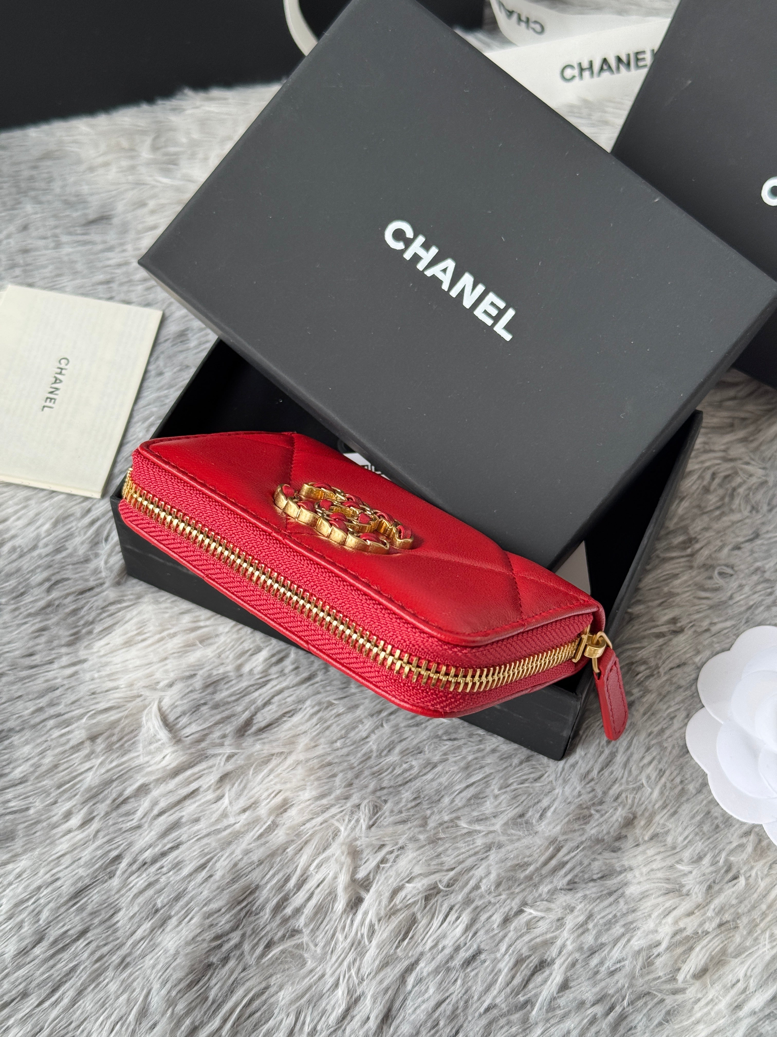 CC 19 Quilted Zipper Coin Purse Red Gold-Tone Sheepskin 242794