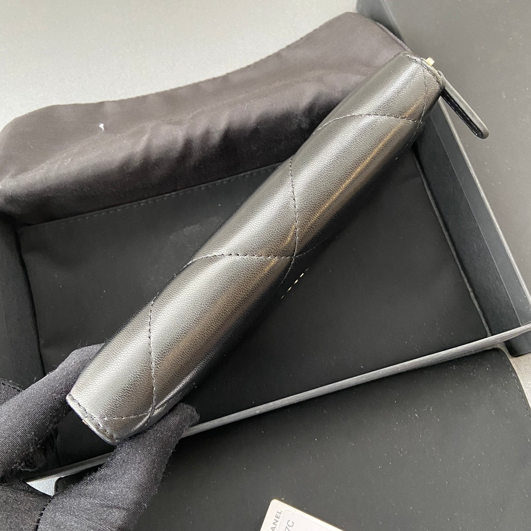 cc 19 zipped wallet 19.5cm black calfskin gold hardware