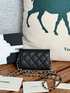 CC 24 Classic Wallet On Chain 11cm Black Gold Metal Caviar 240666