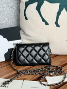 CC 24 Classic Wallet On Chain 11cm Black Sliver Metal Lamskin 240660