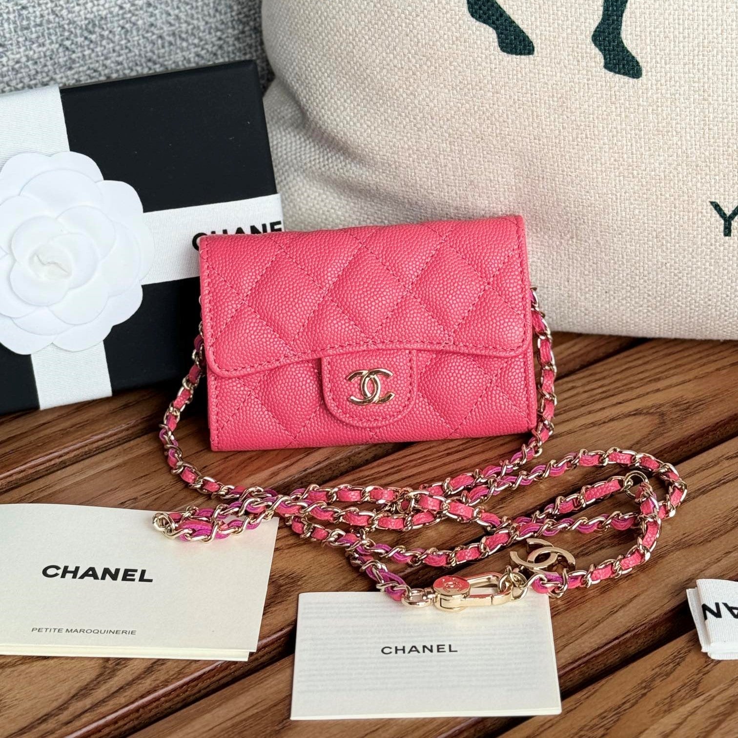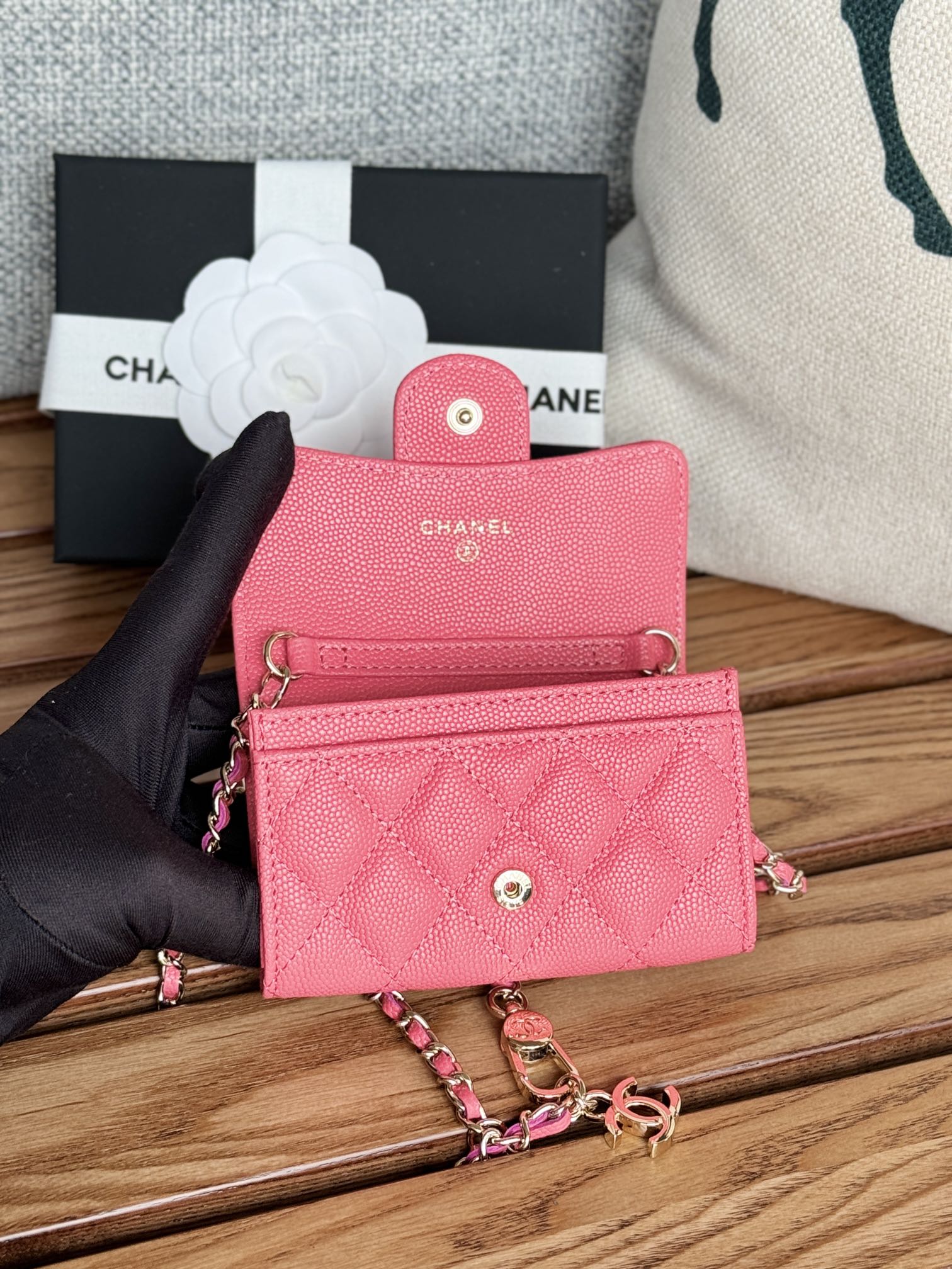 CC 24 Classic Wallet On Chain 11cm PInk Caviar Leather 240672