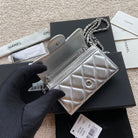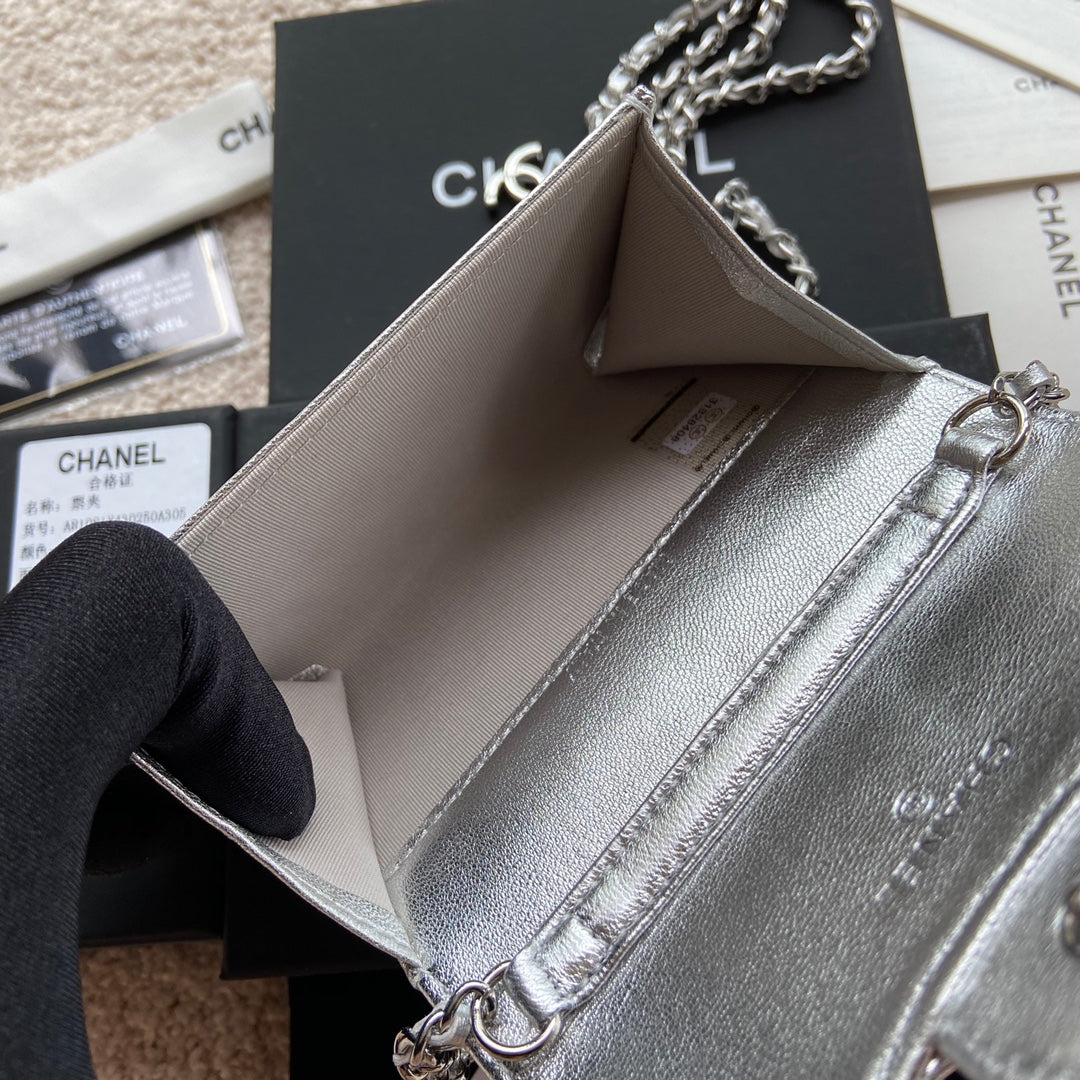 CC 24 Classic Wallet On Chain 11cm Silver Sheepskin 156514