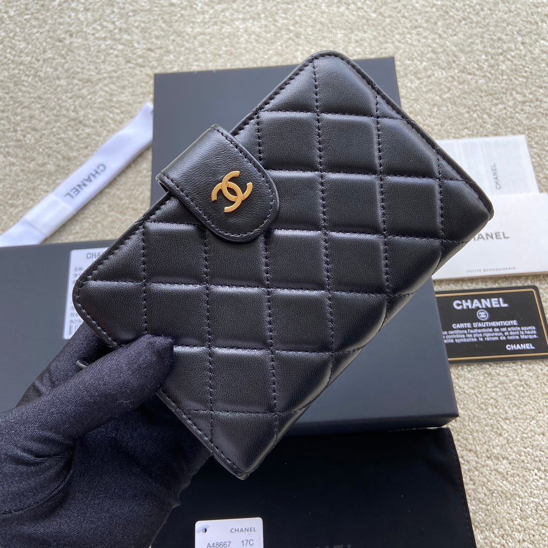 CC A48667 Zip Pocket Wallet Black Sheepskin GHW 229762