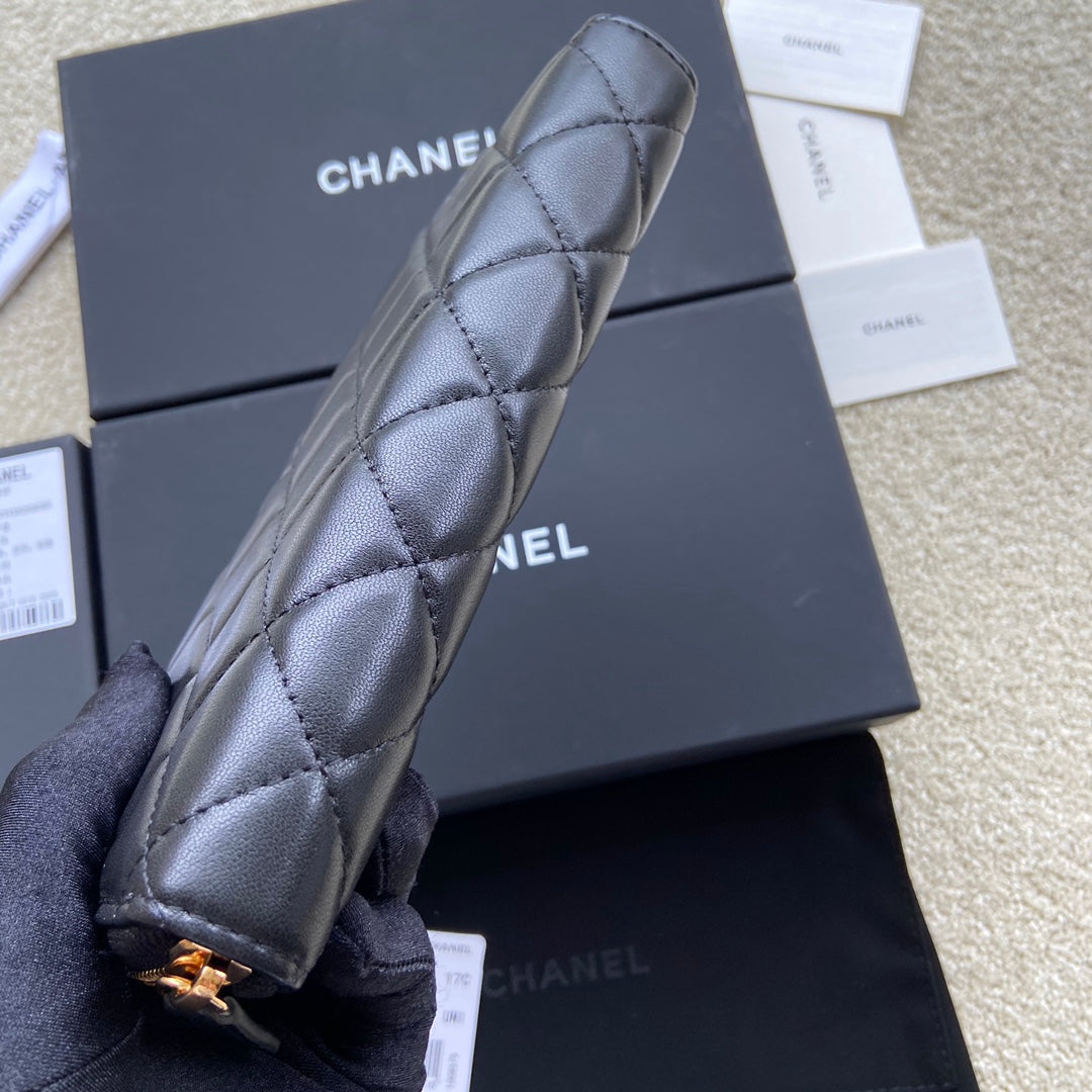 CC A50097 Classic Zipper Wallet Black Lambskin GHW 229662