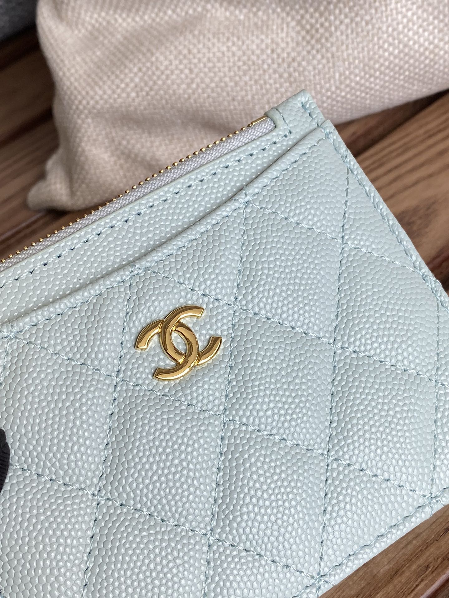 CC A84105 Coin Case Light Blue Gold Metal Caviar 240735
