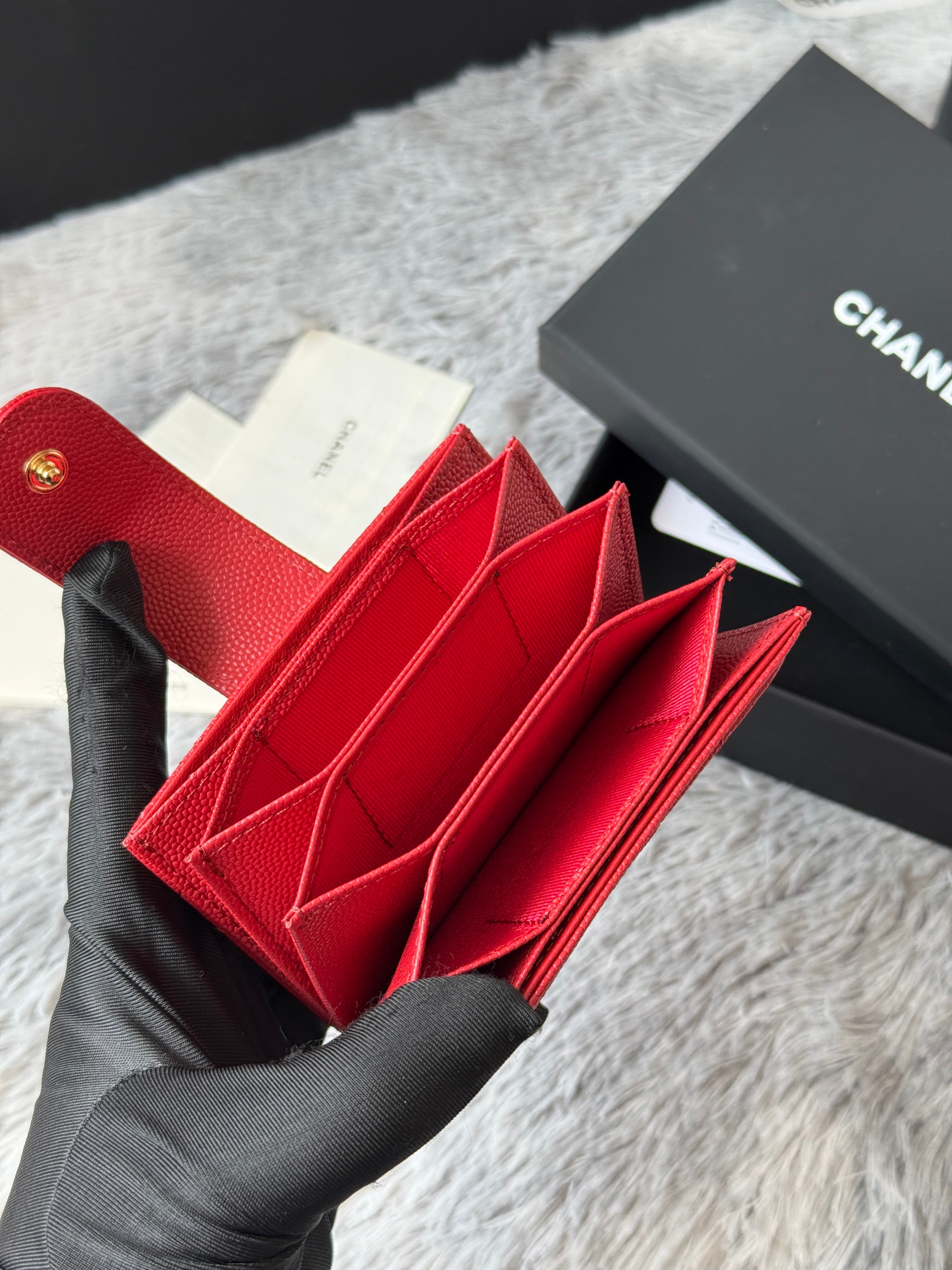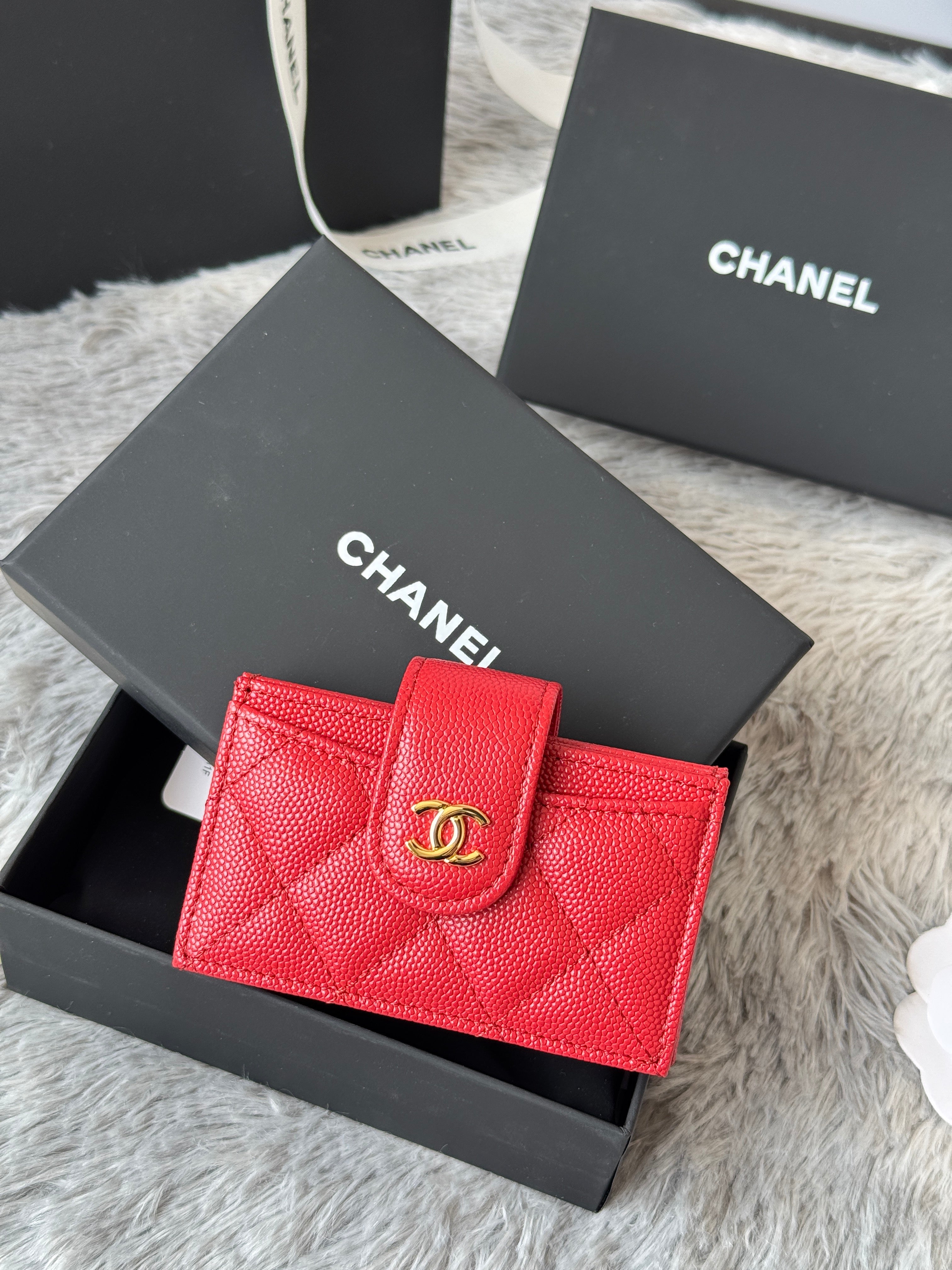 CC Accordion Card Holder Red Gold-tone Metal Caviar 242669