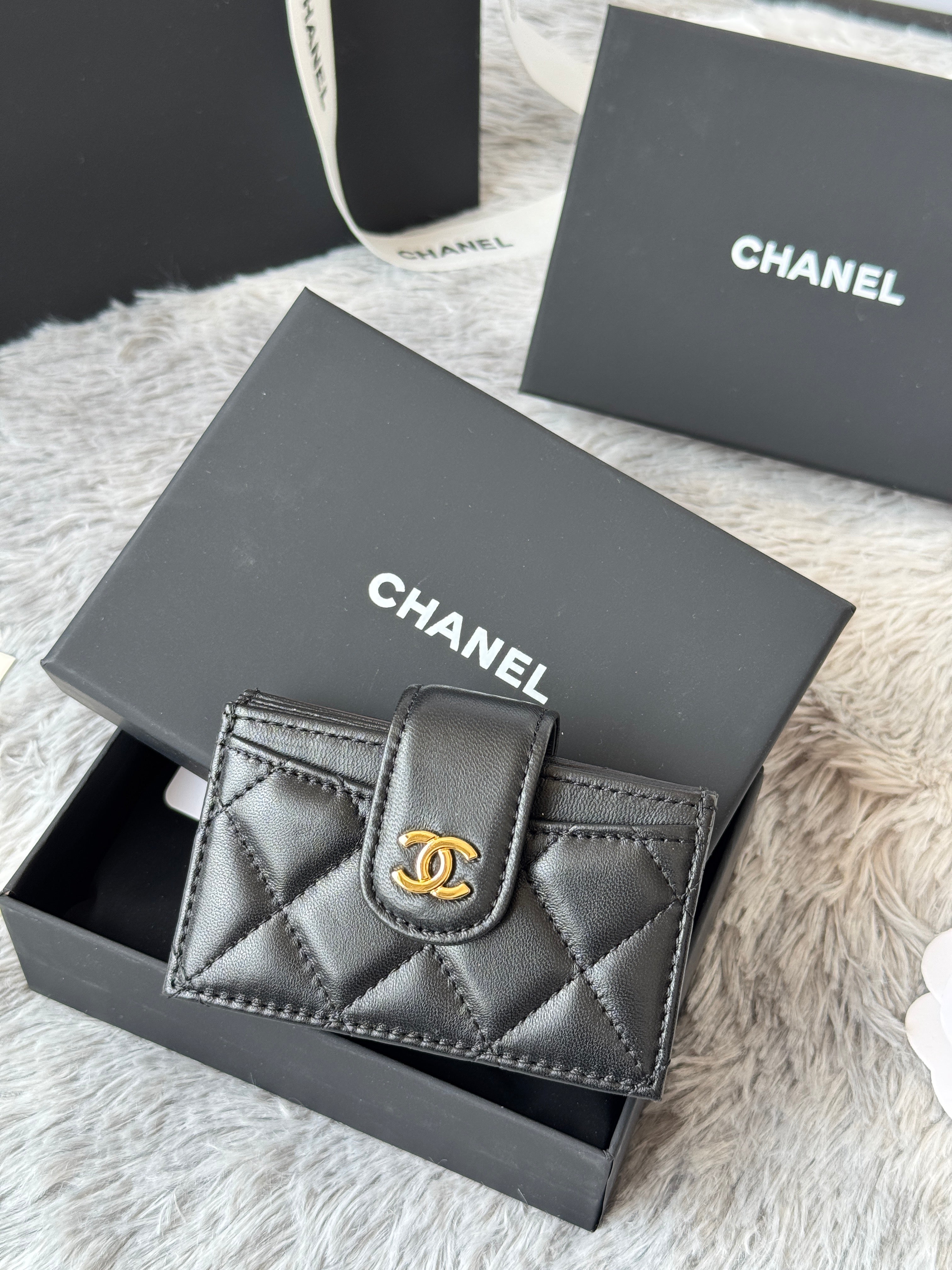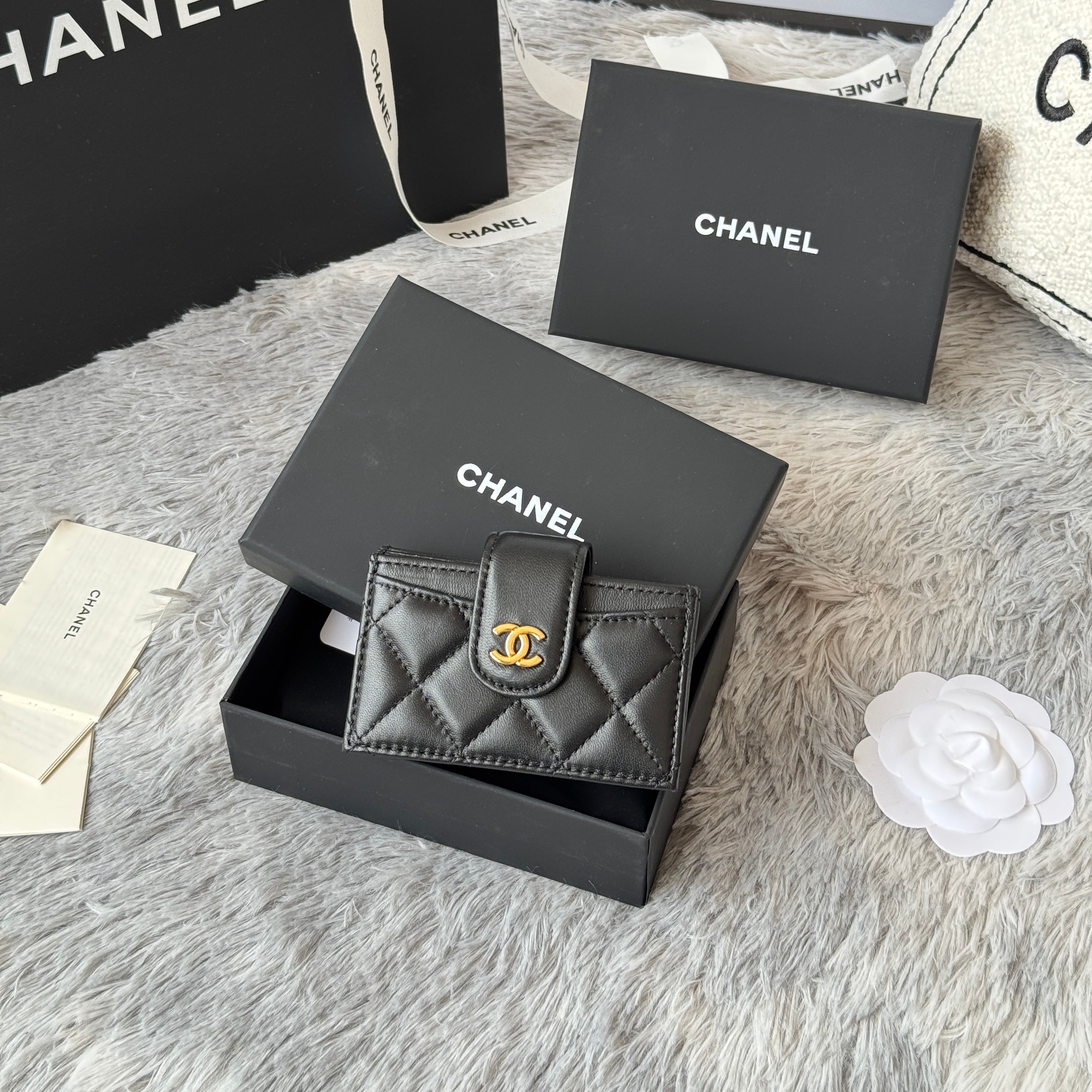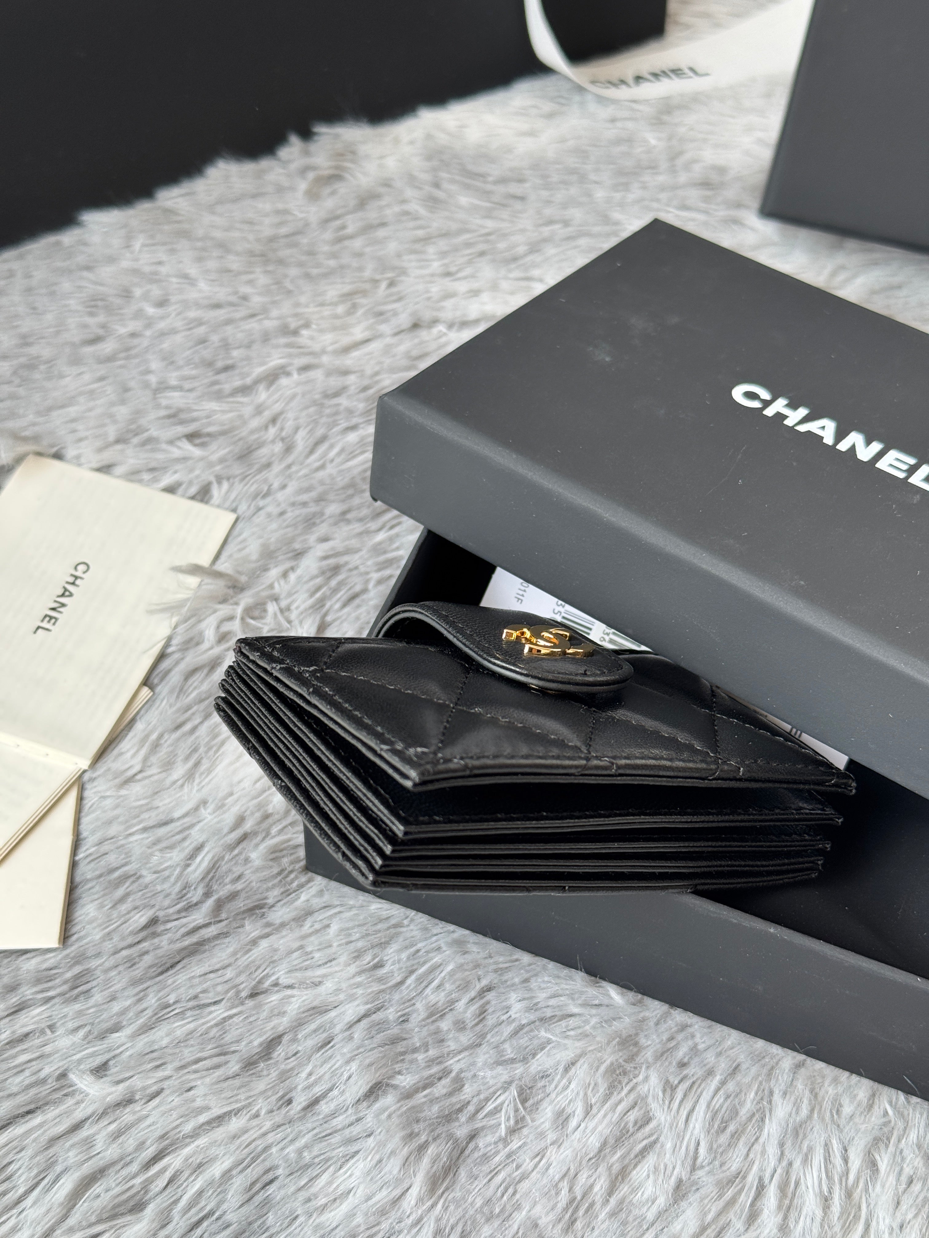 CC Accordion Card Holder Black Gold-tone Metal Lamskin 242644