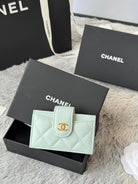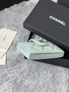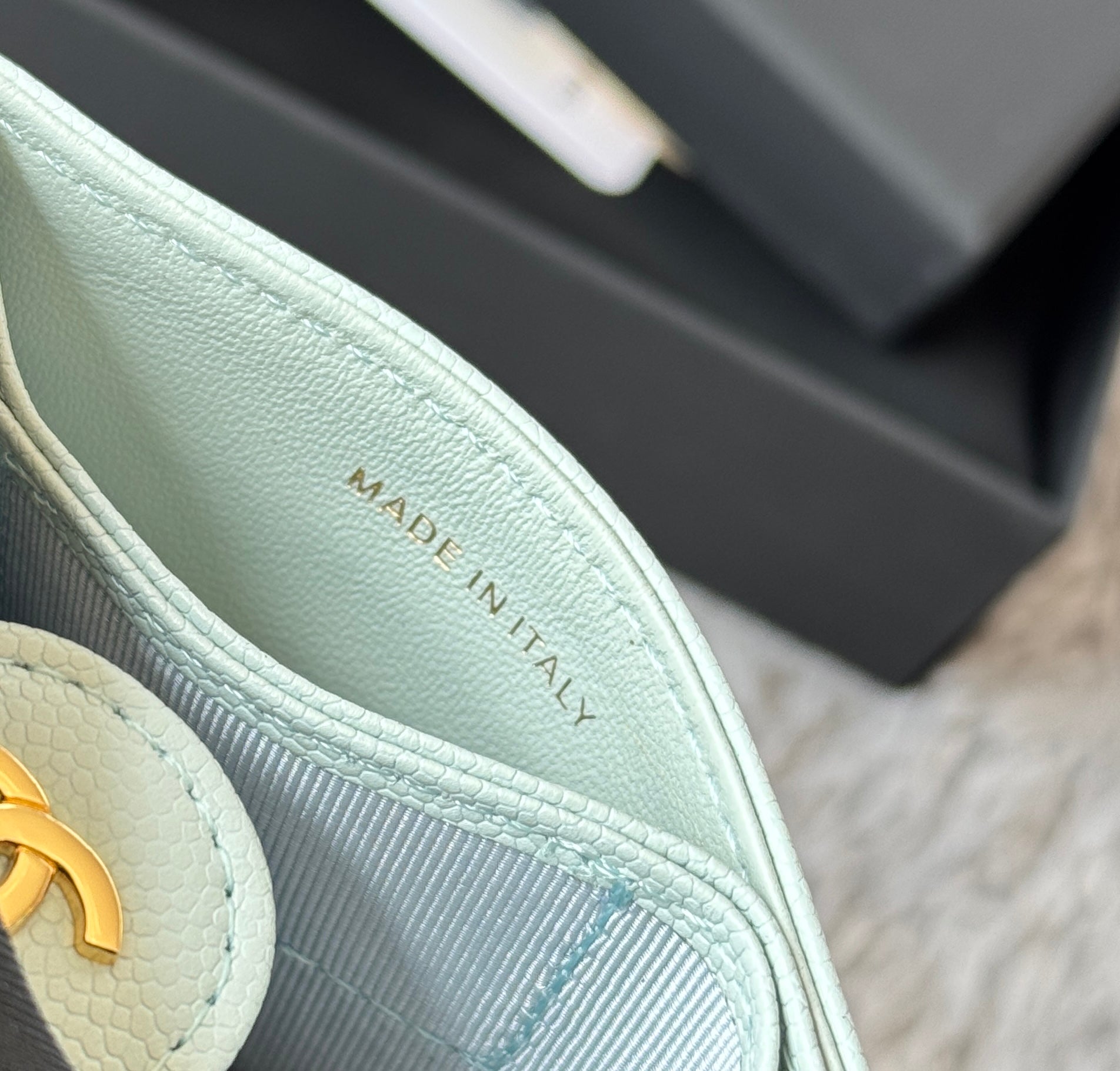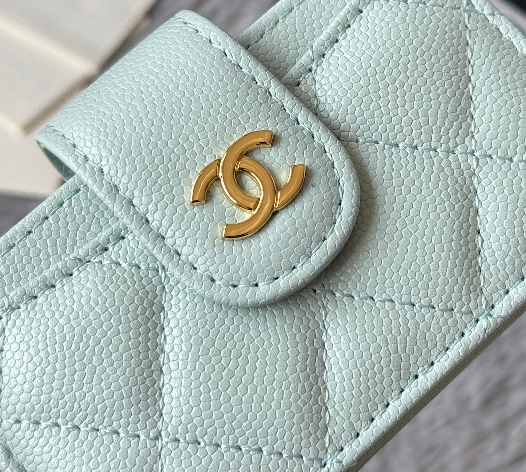 CC Accordion Card Holder Light Blue Gold-tone Metal Caviar 242663