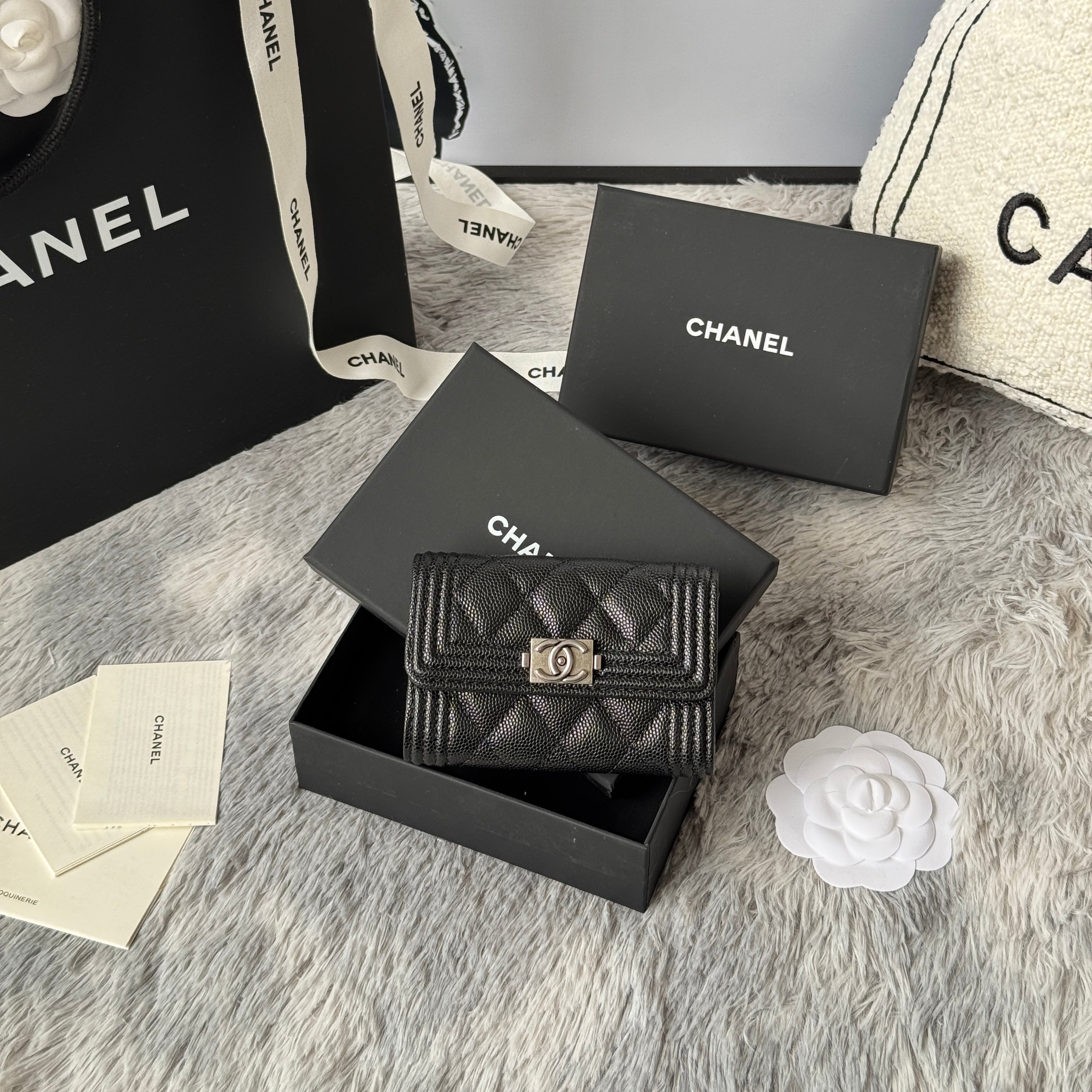 CC Boy Flap Card Holder Black Sliver-tone Grained Calfskin 242888