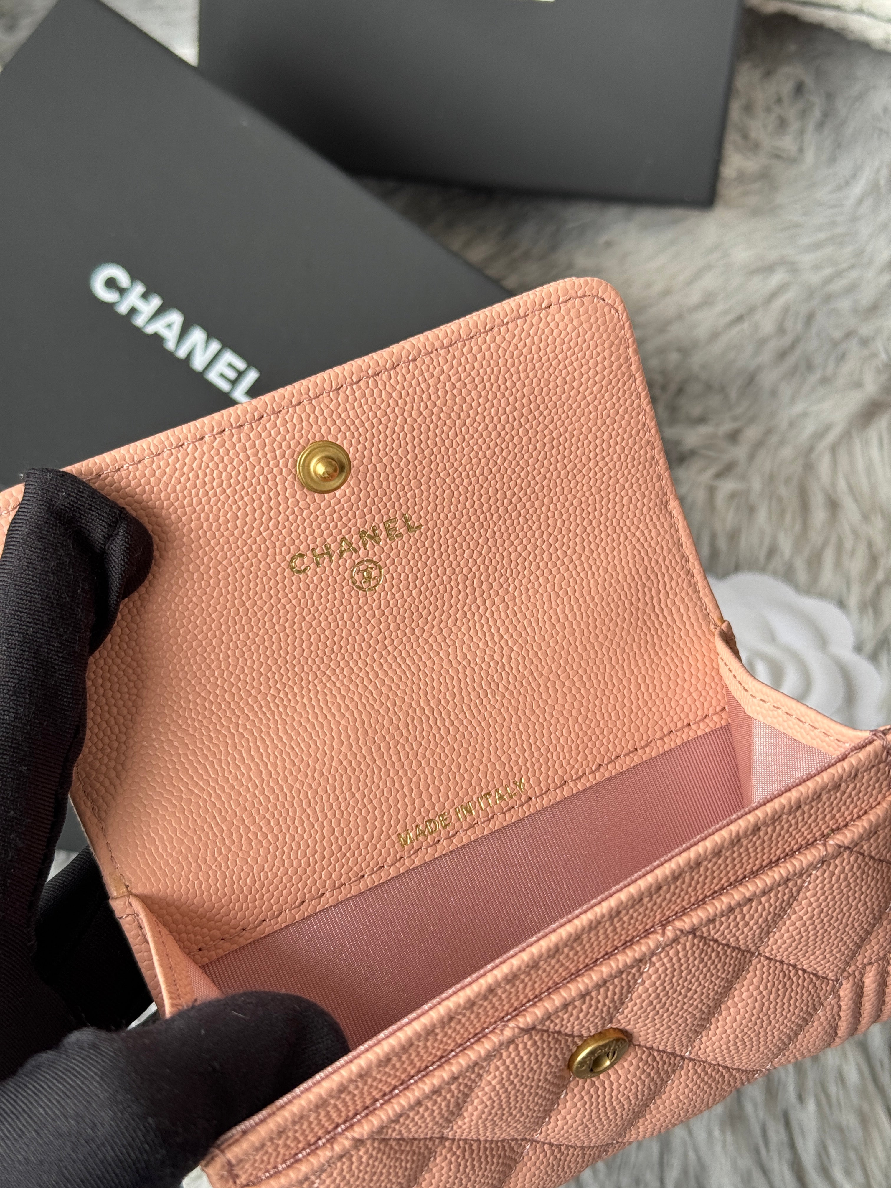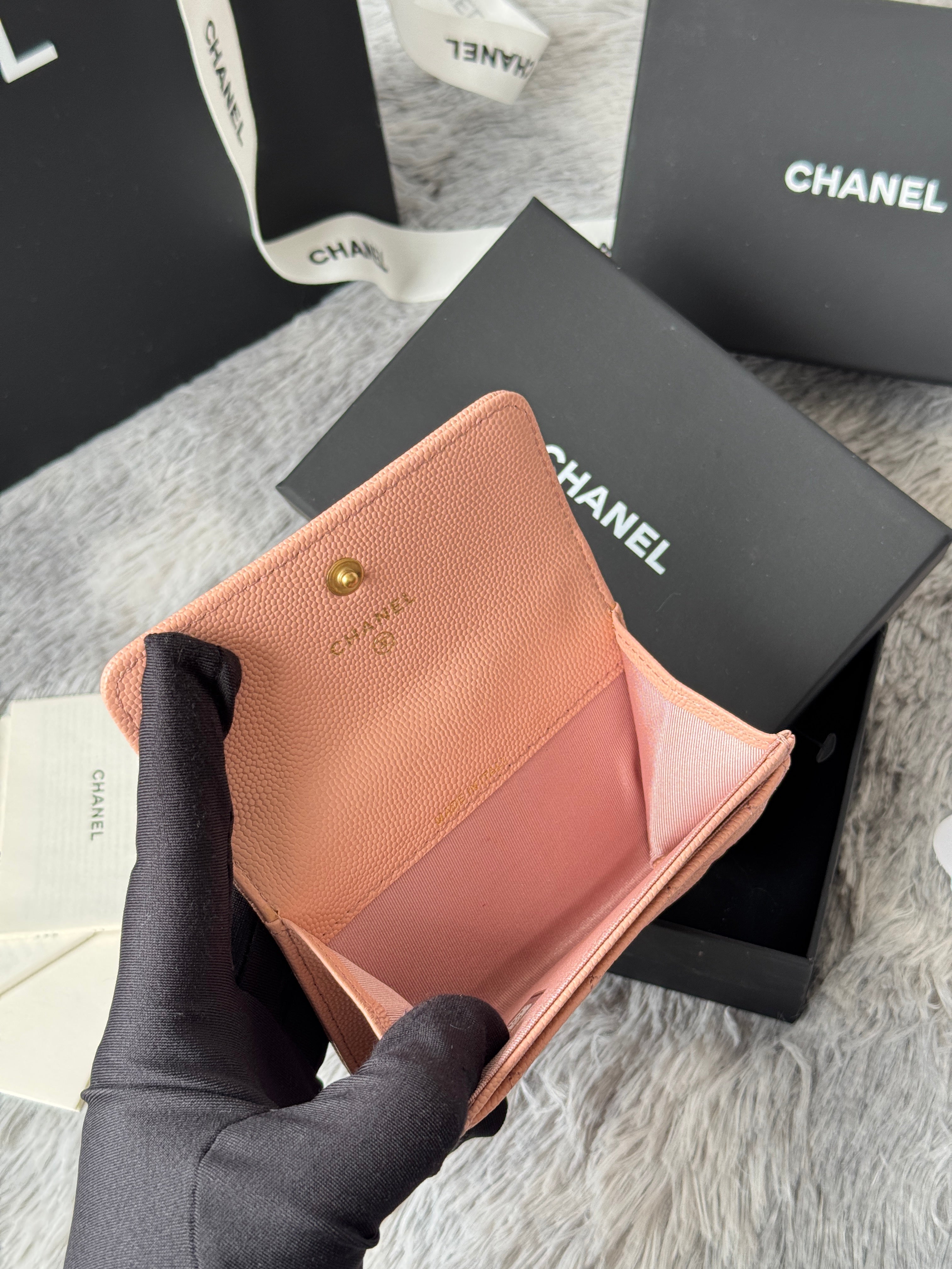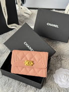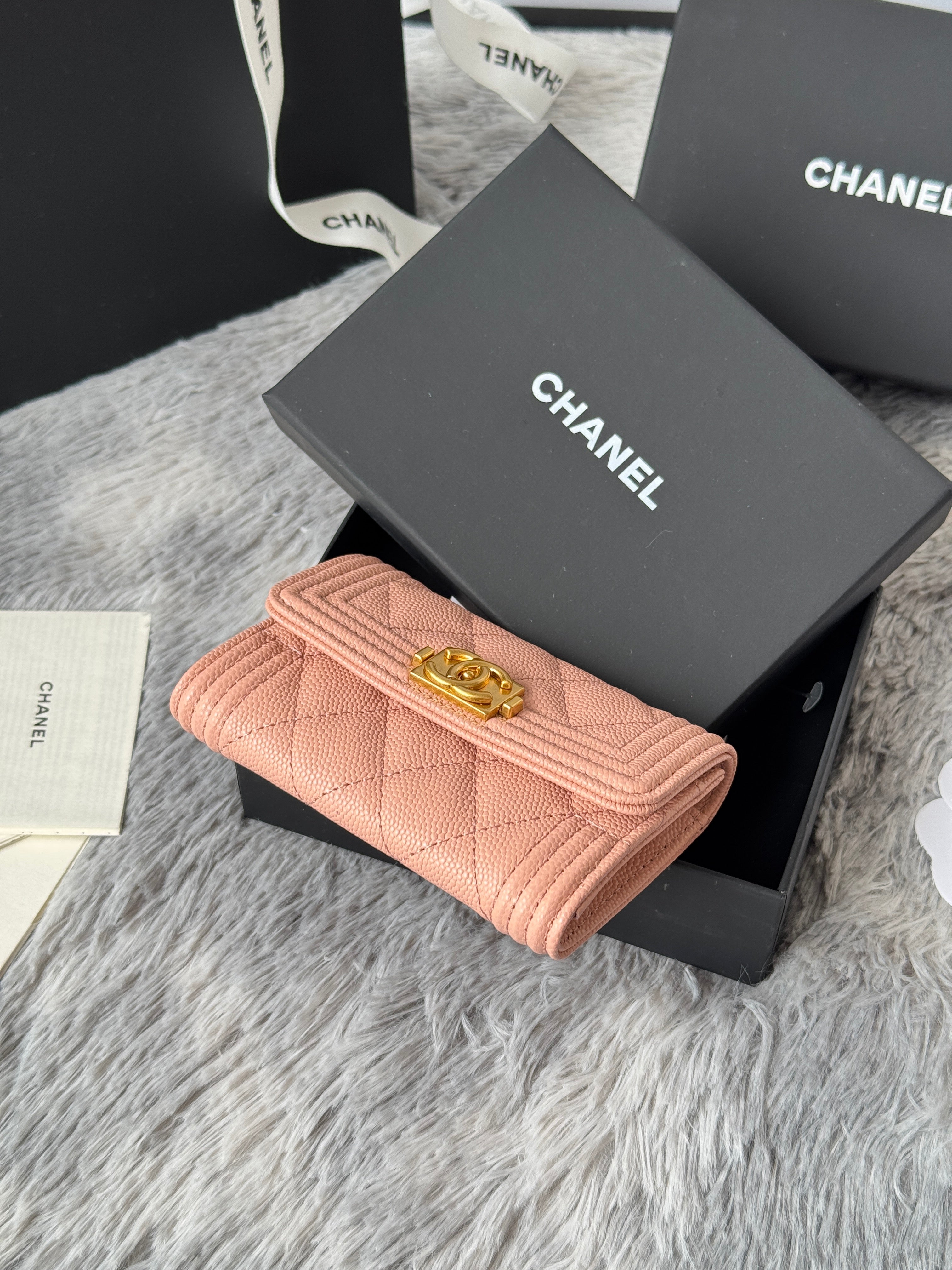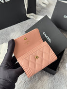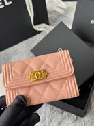 CC Boy Flap Card Holder Light Pink Gold-tone Grained Calfskin 242856