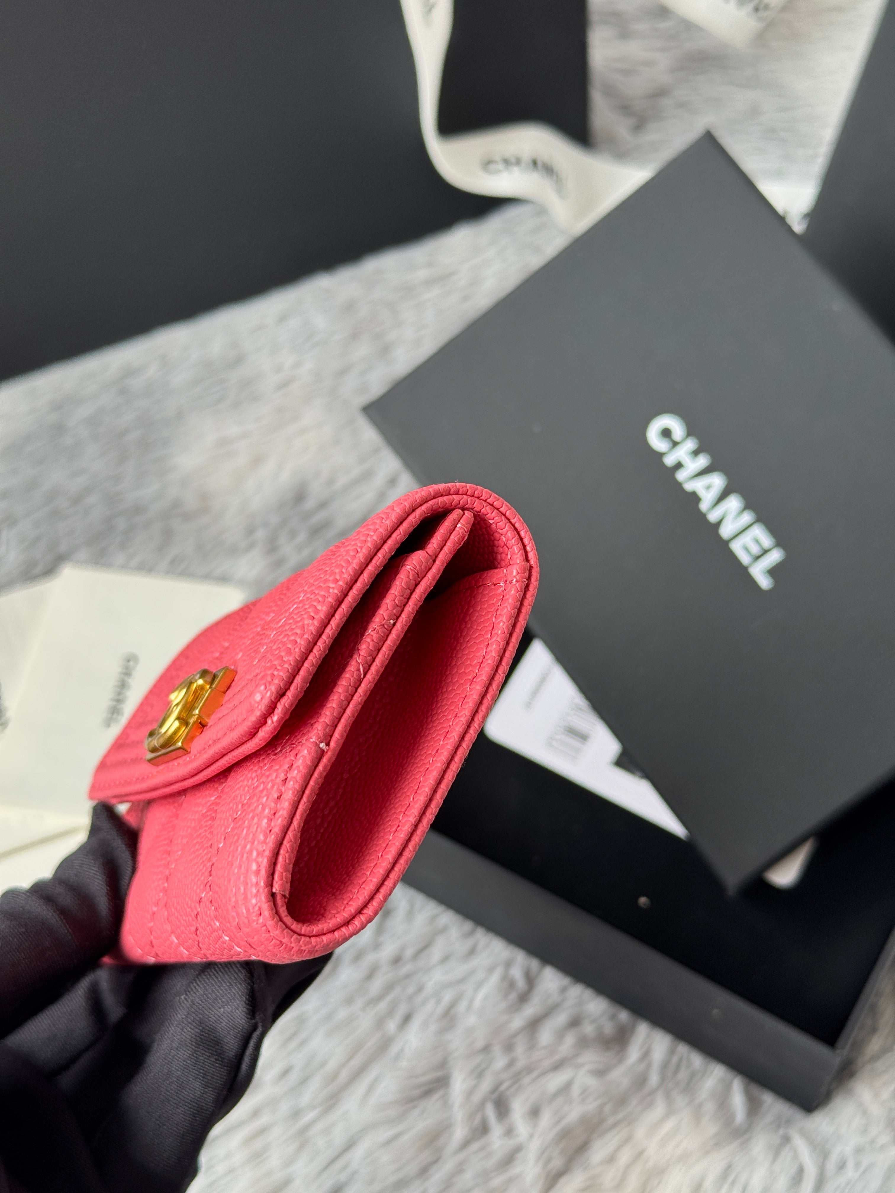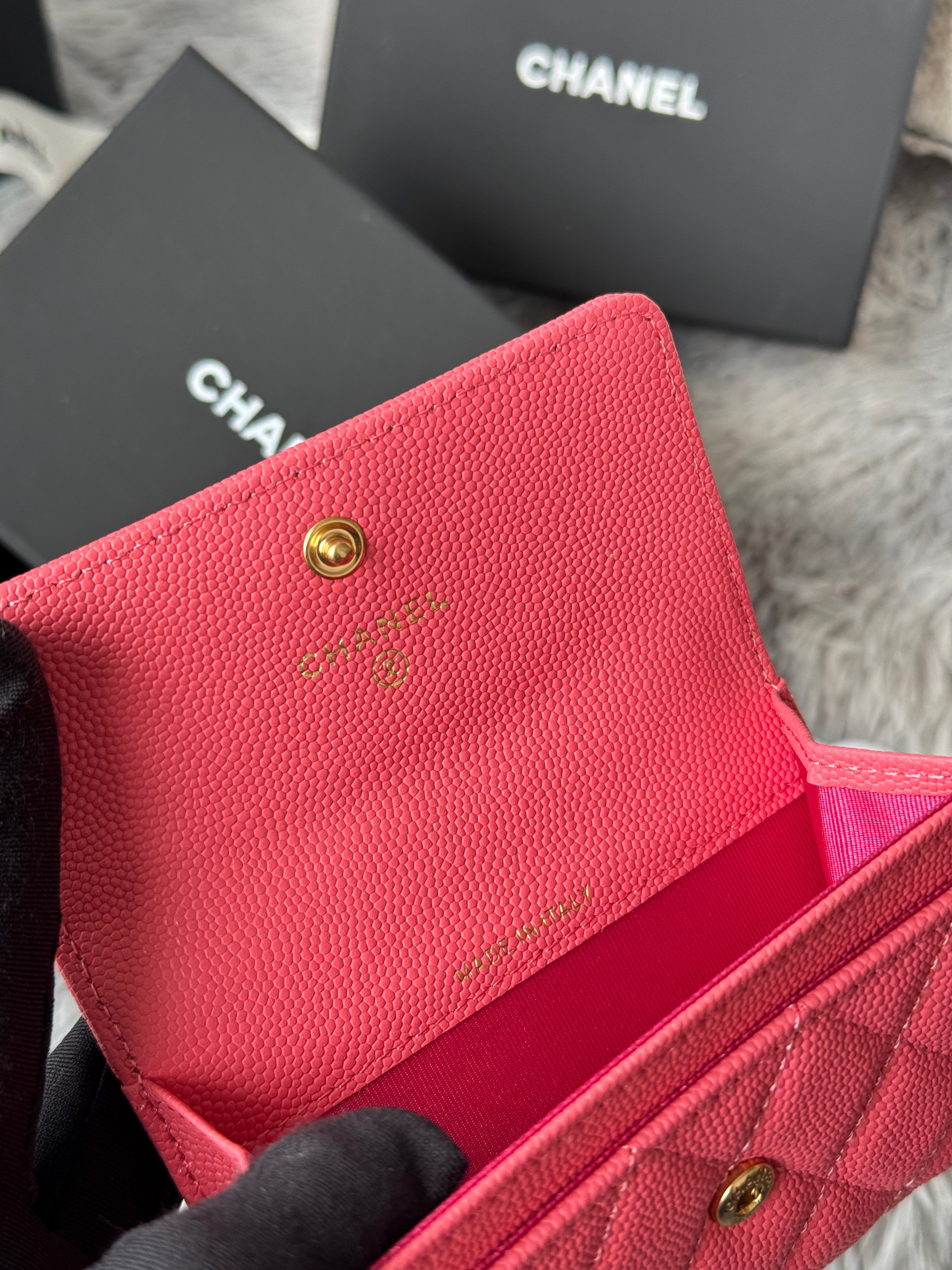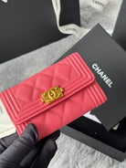 CC Boy Flap Card Holder Pink Gold-tone Grained Calfskin 242858