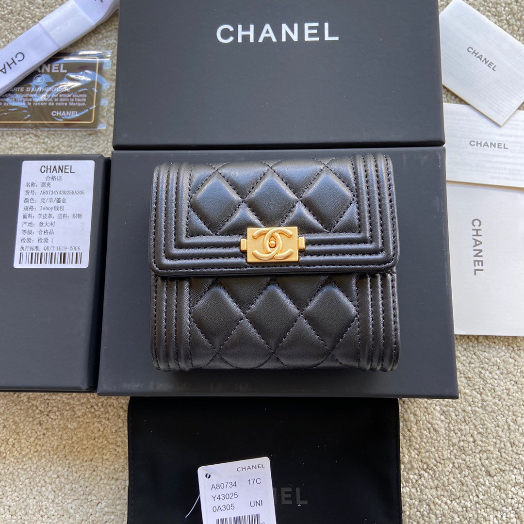CC Boy Small Flap Wallet Black Sheepskin GHW 156518