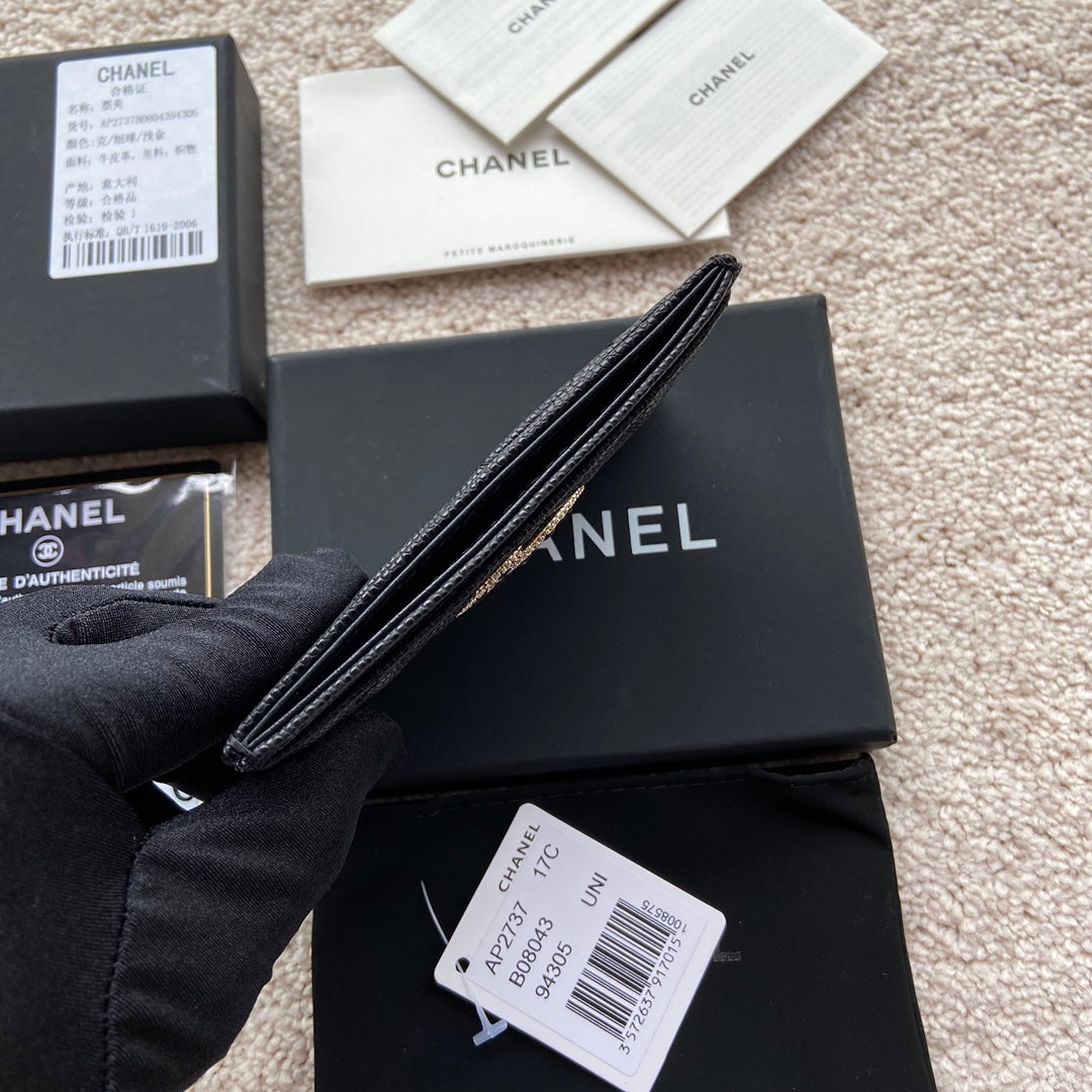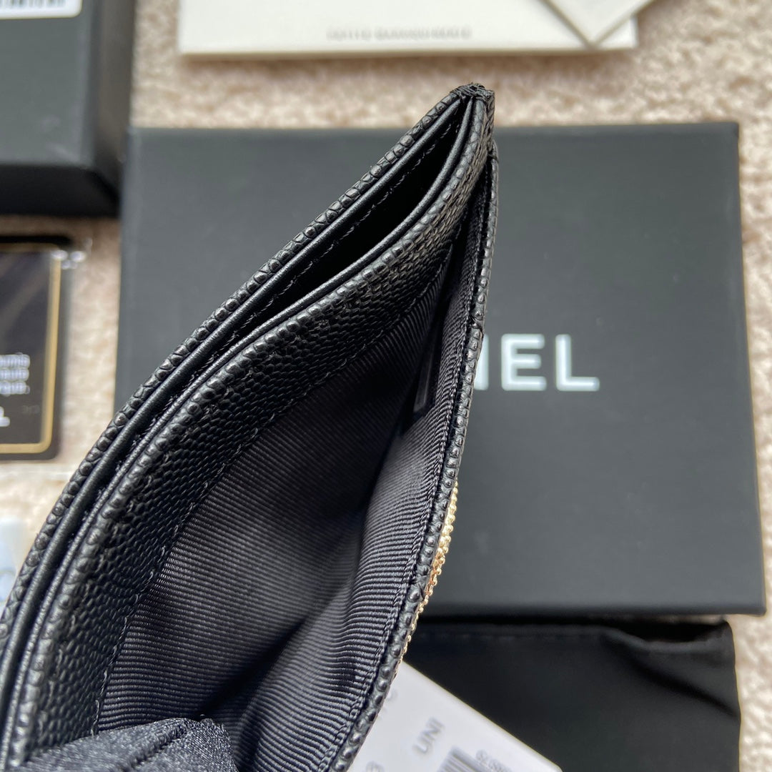 cc card holder 11cm black caviar light gold hardware