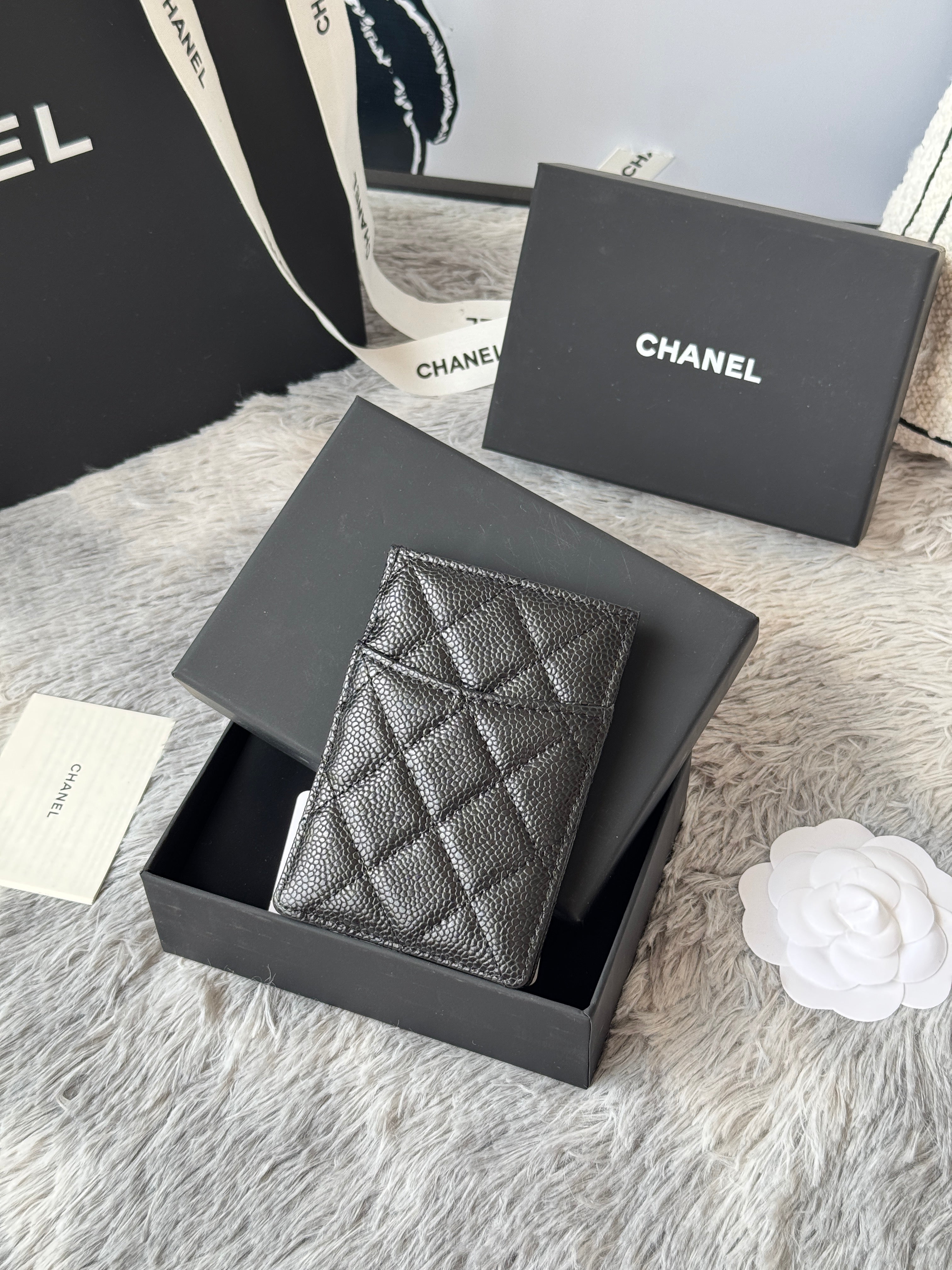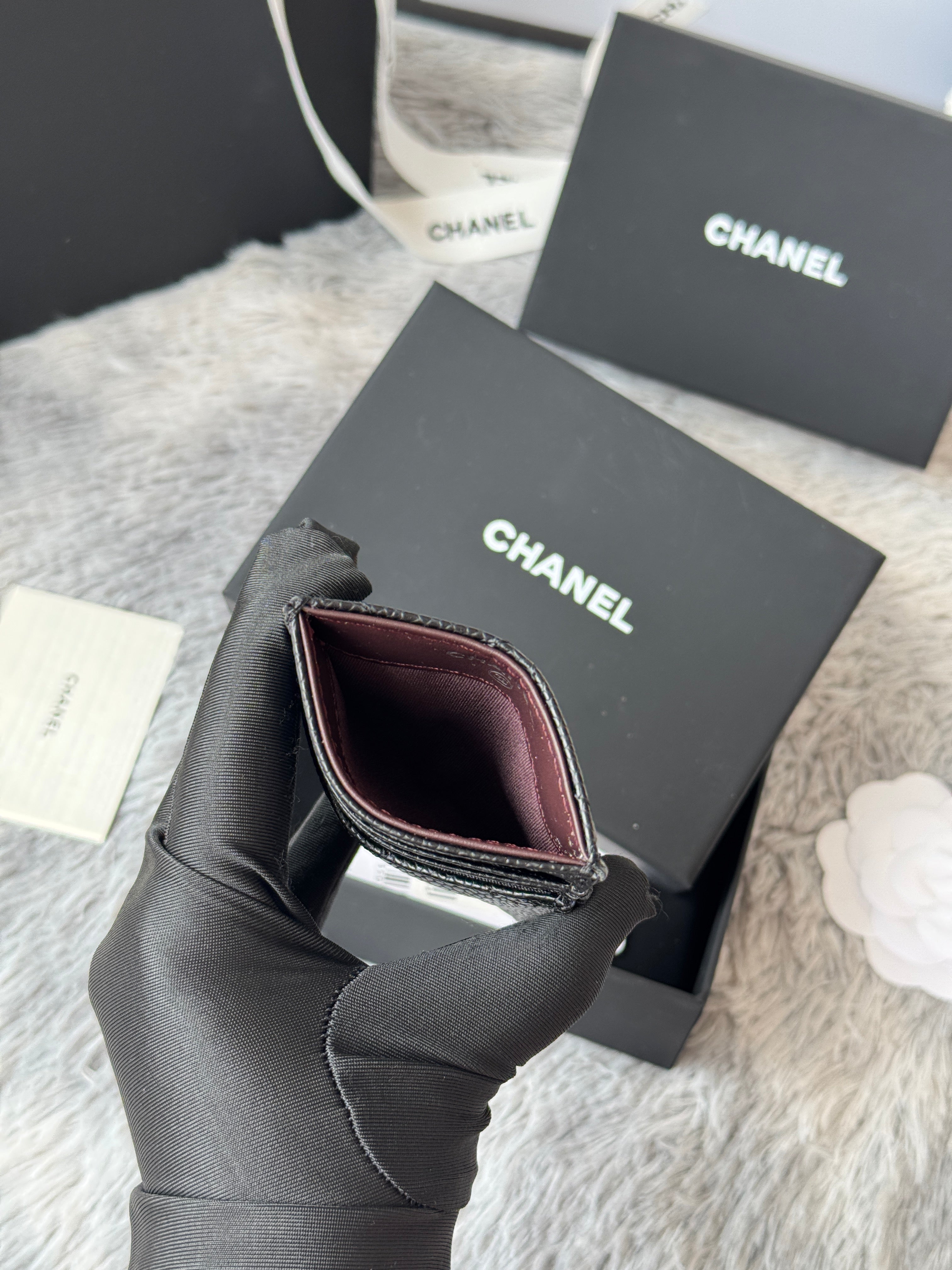 CC Carld Holder Black Golden- tone Metal Grain Calfskin 242680