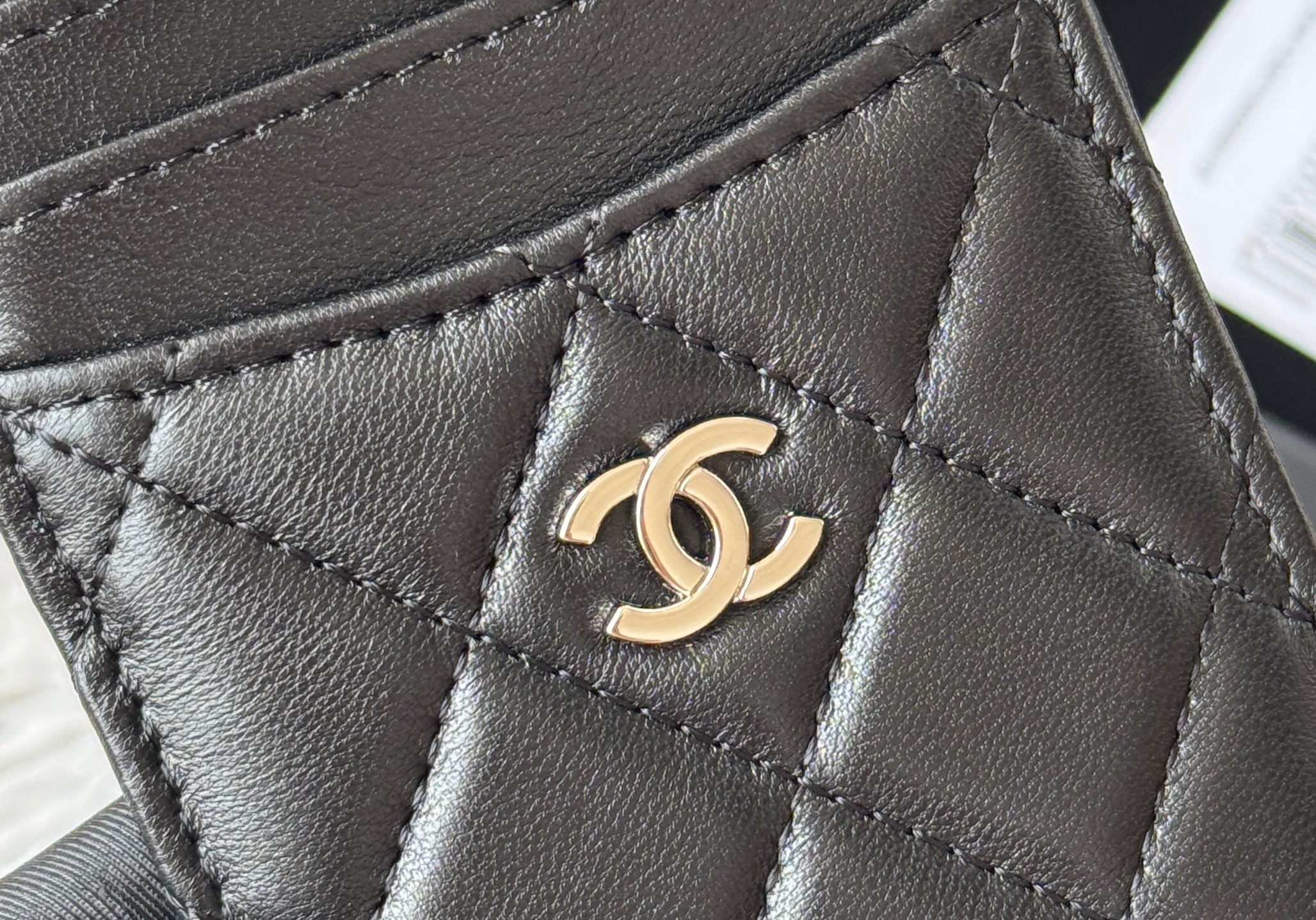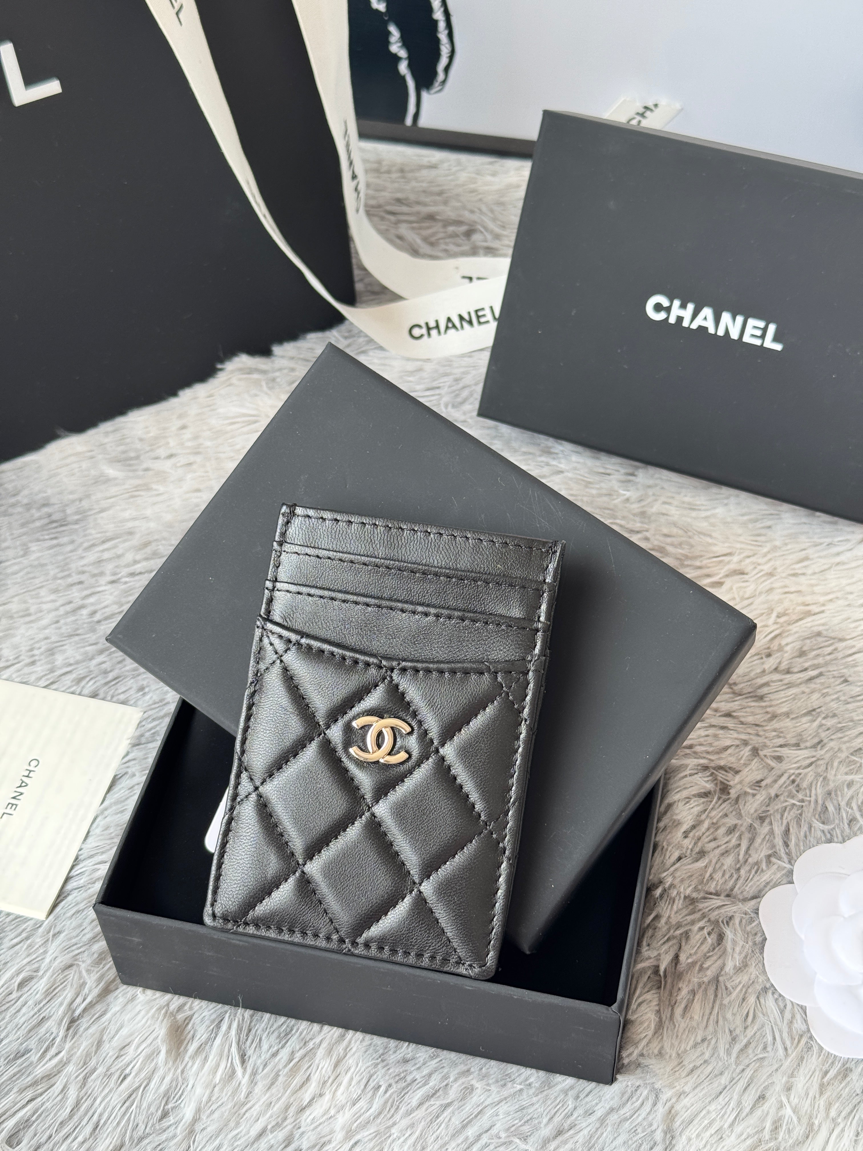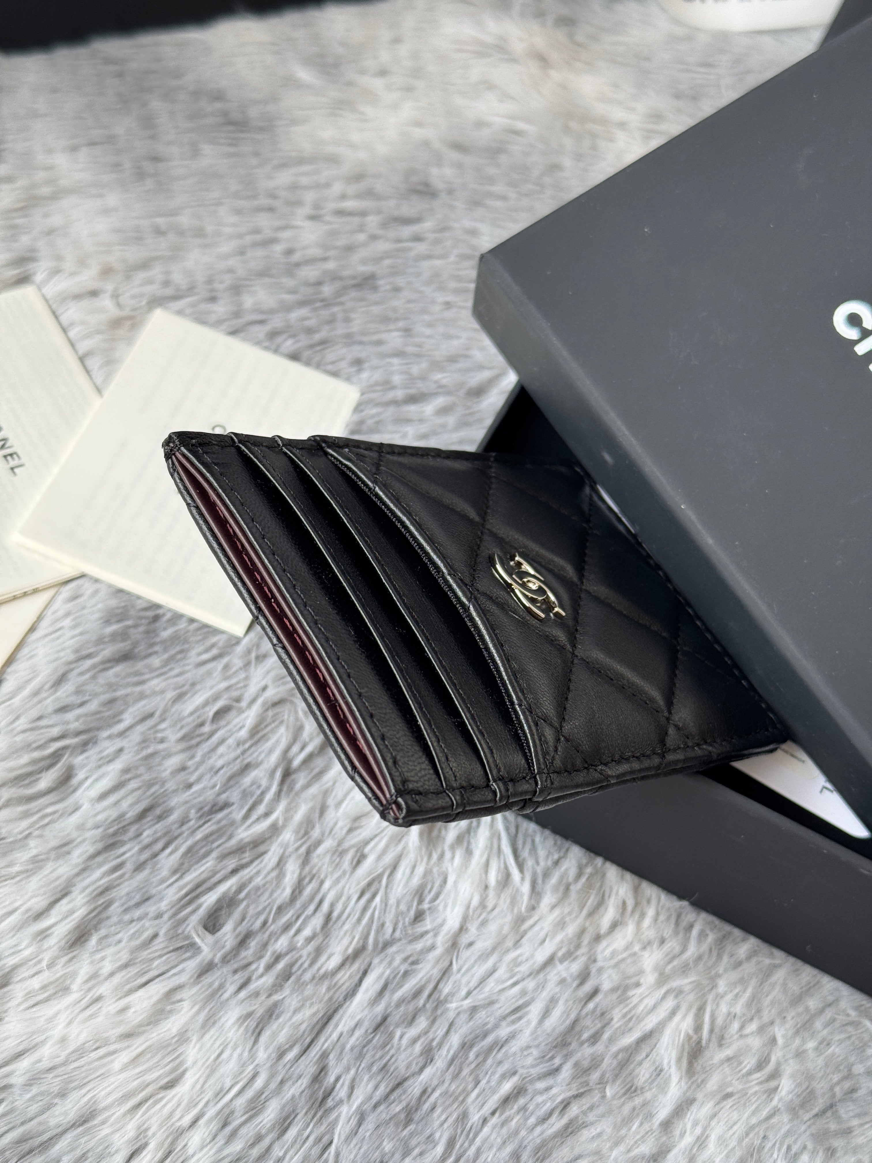 CC Carld Holder Black Sliver-tone Metal Lamskin 242674