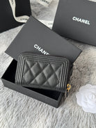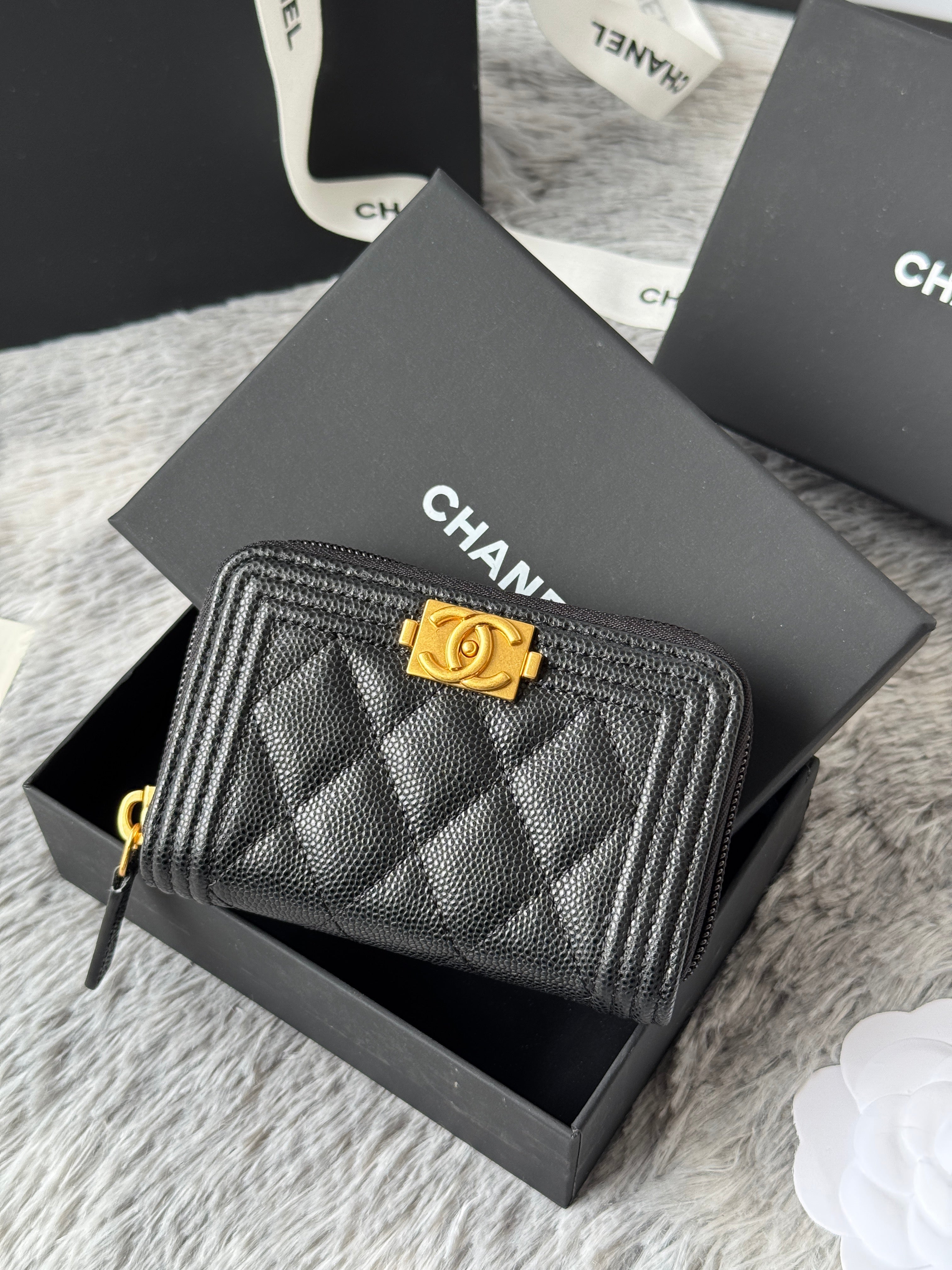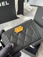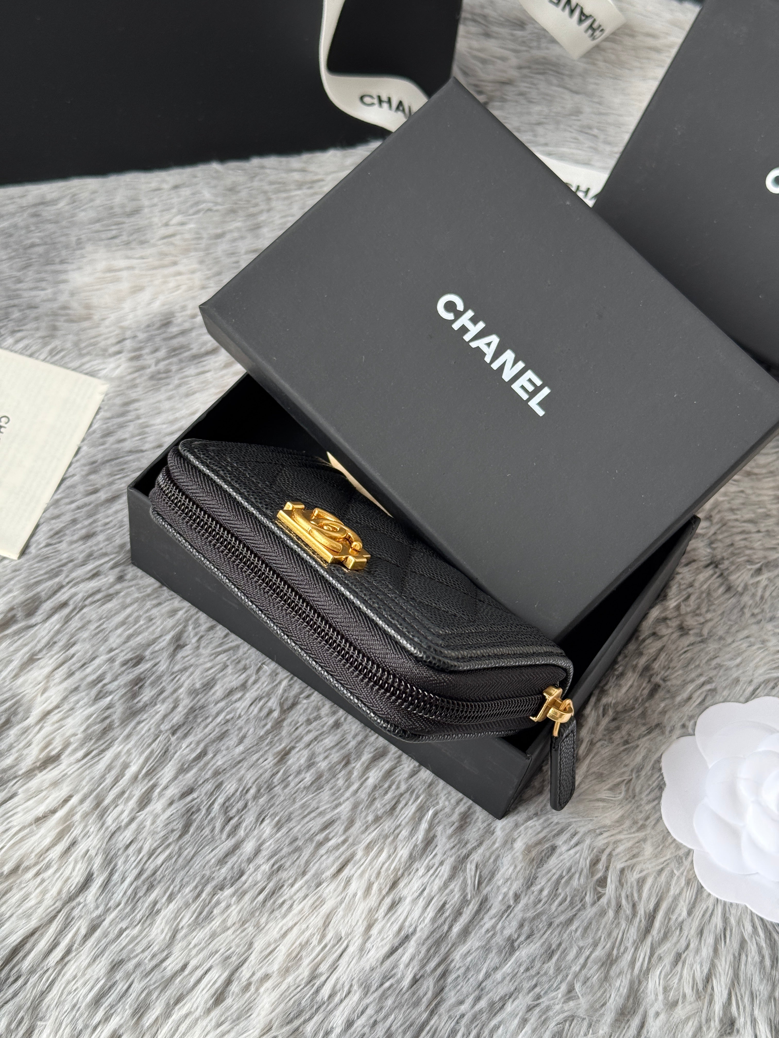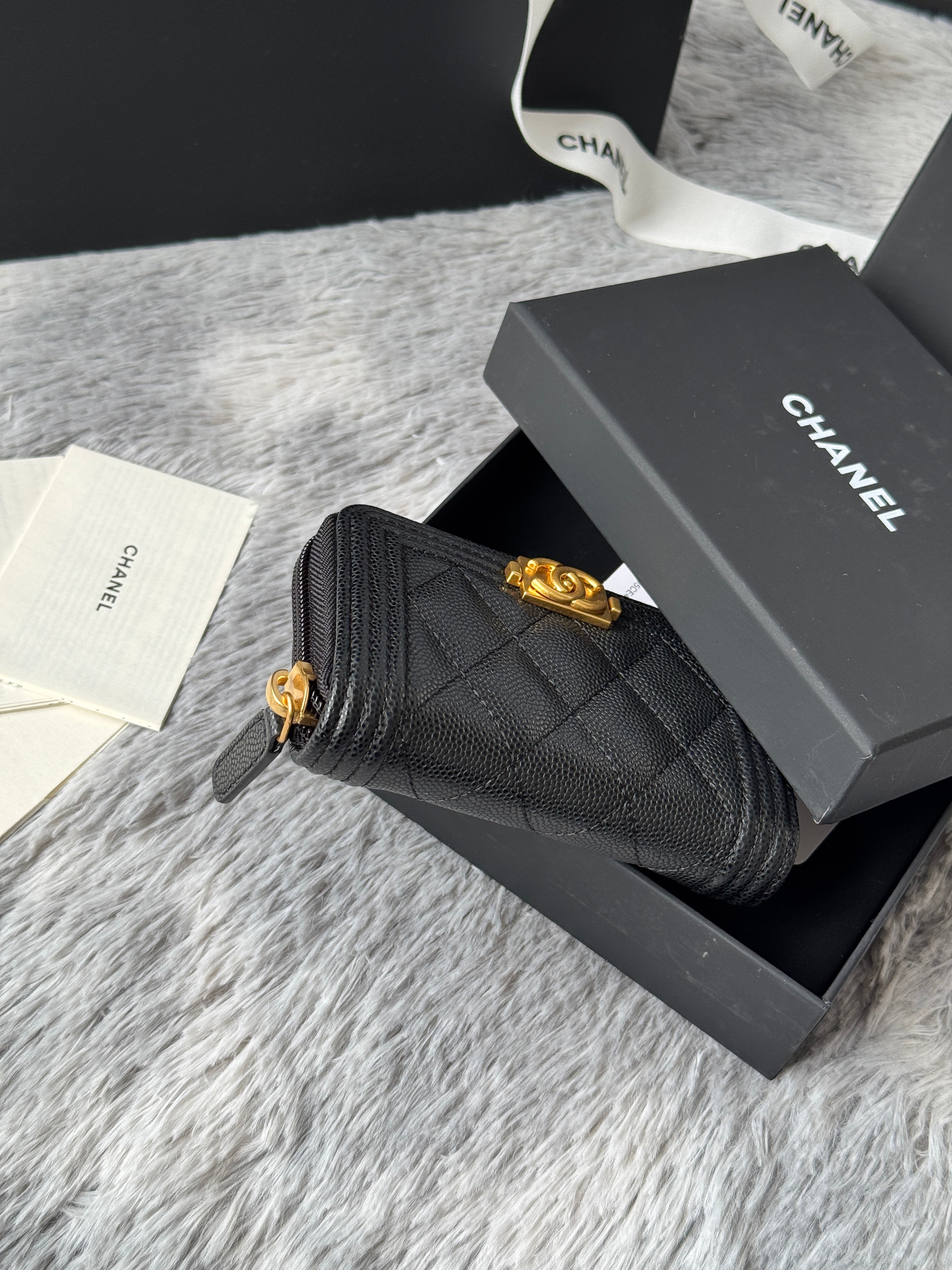CC Classic Boy Coin Purse Black Gold-tone Grained Calfskin 242882