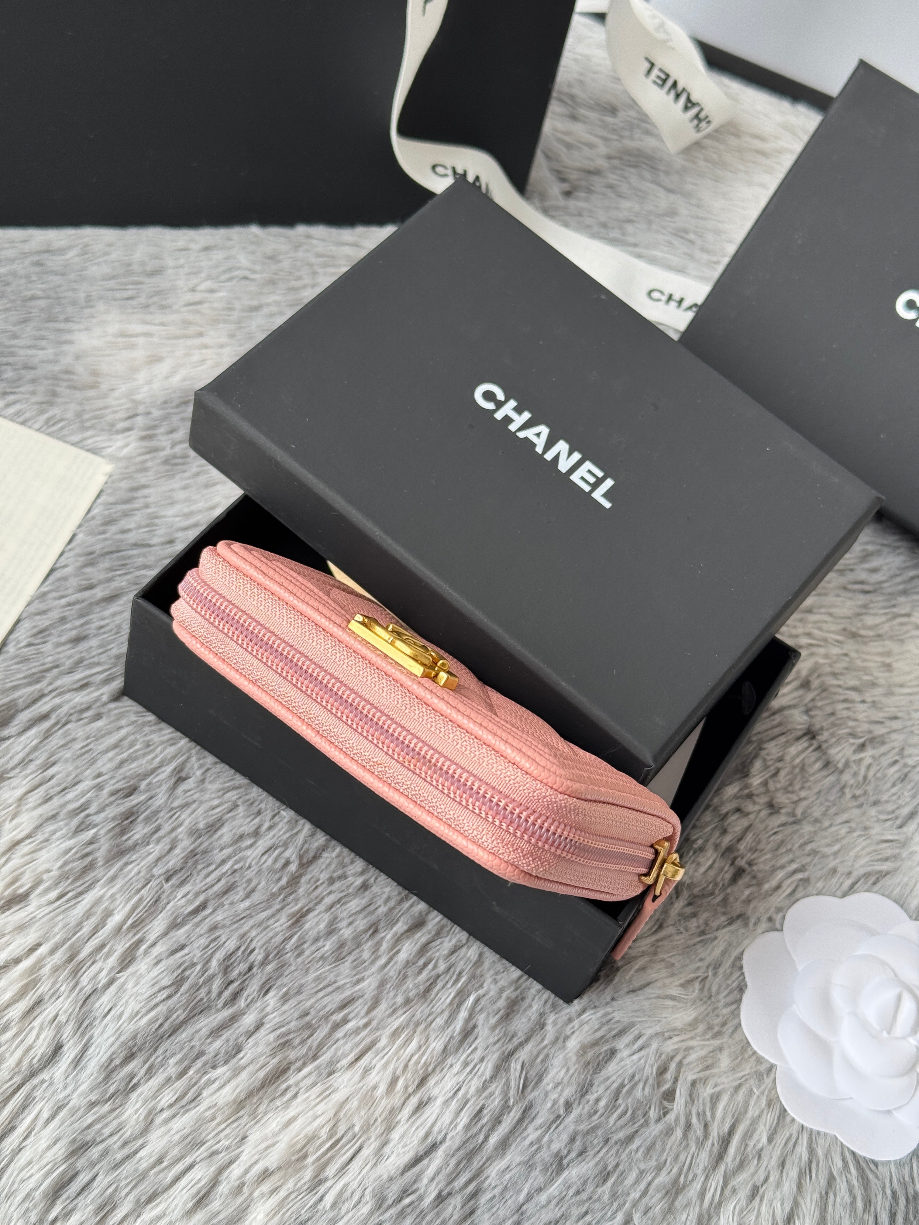 CC Classic Boy Coin Purse Light Pink Gold-tone Grained Calfskin 242874
