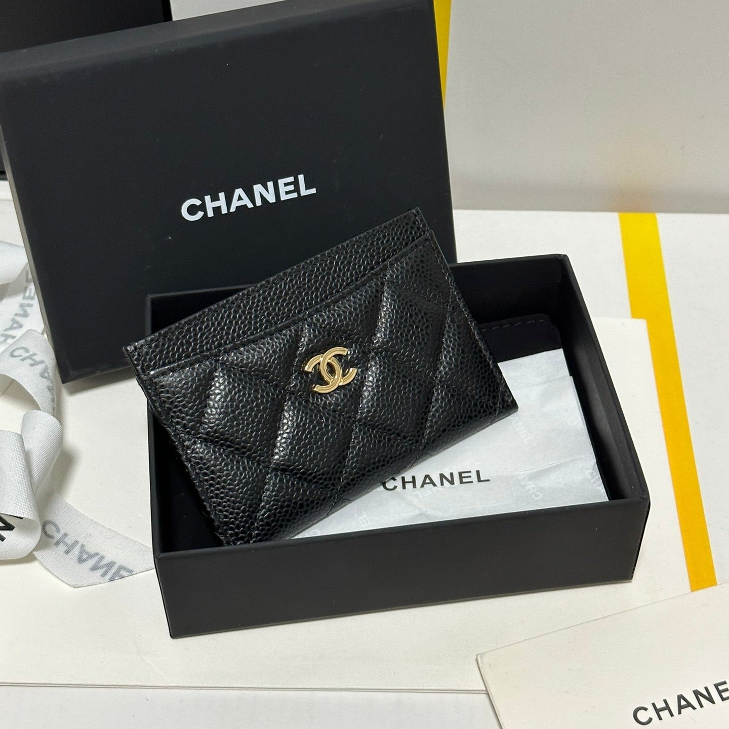 CC Classic Card Holder Black Quilted Caviar Gold Buckle 243696
