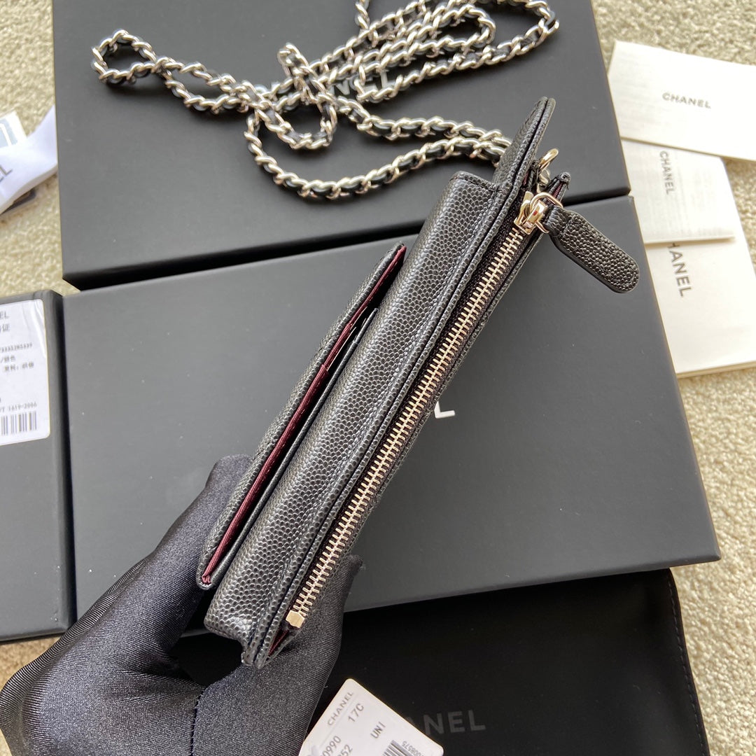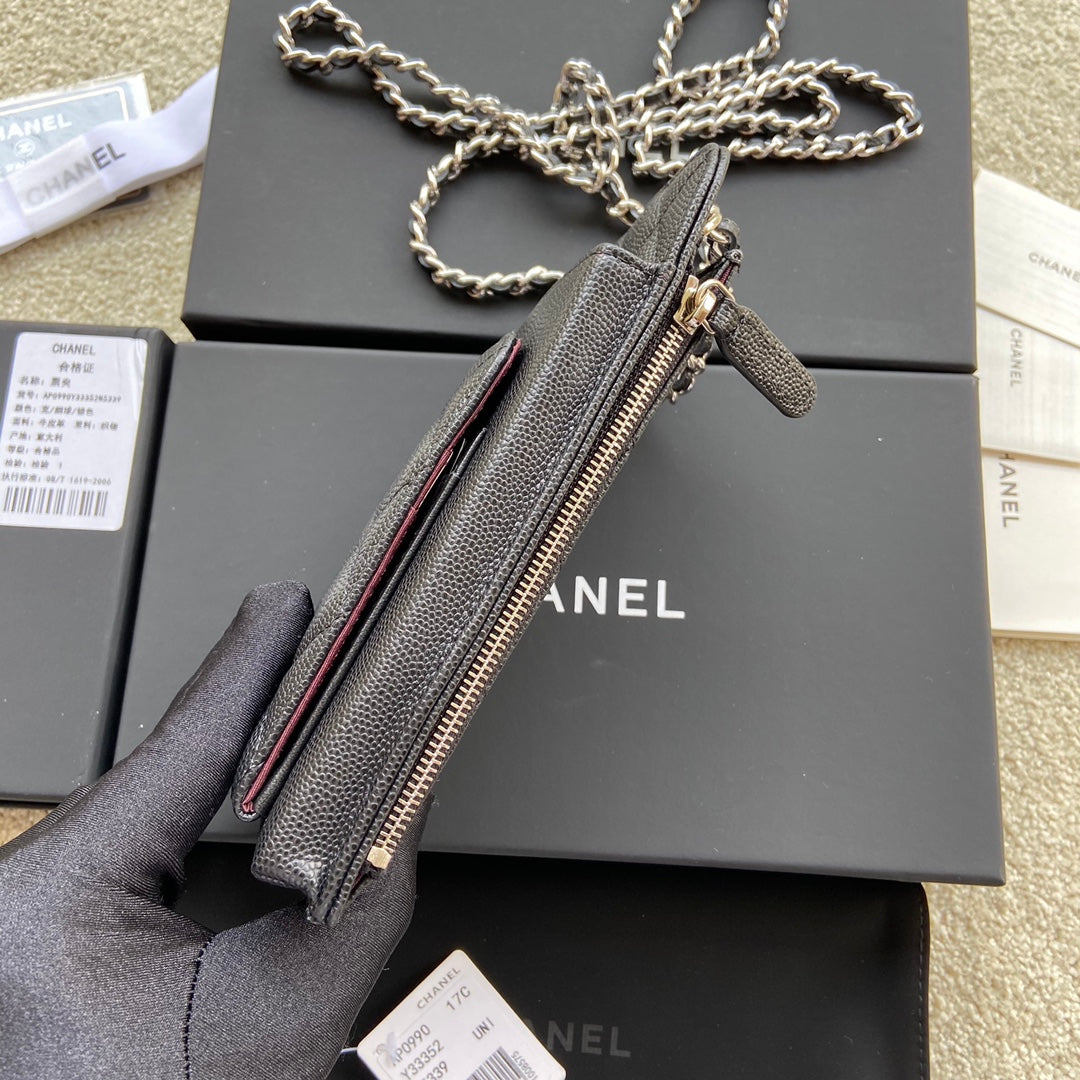 CC Compact Double Pouch Black Caviar Sliver Steel 229639