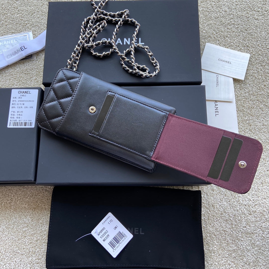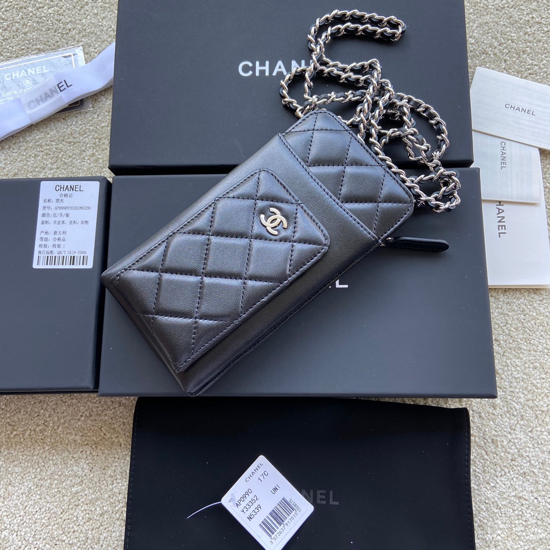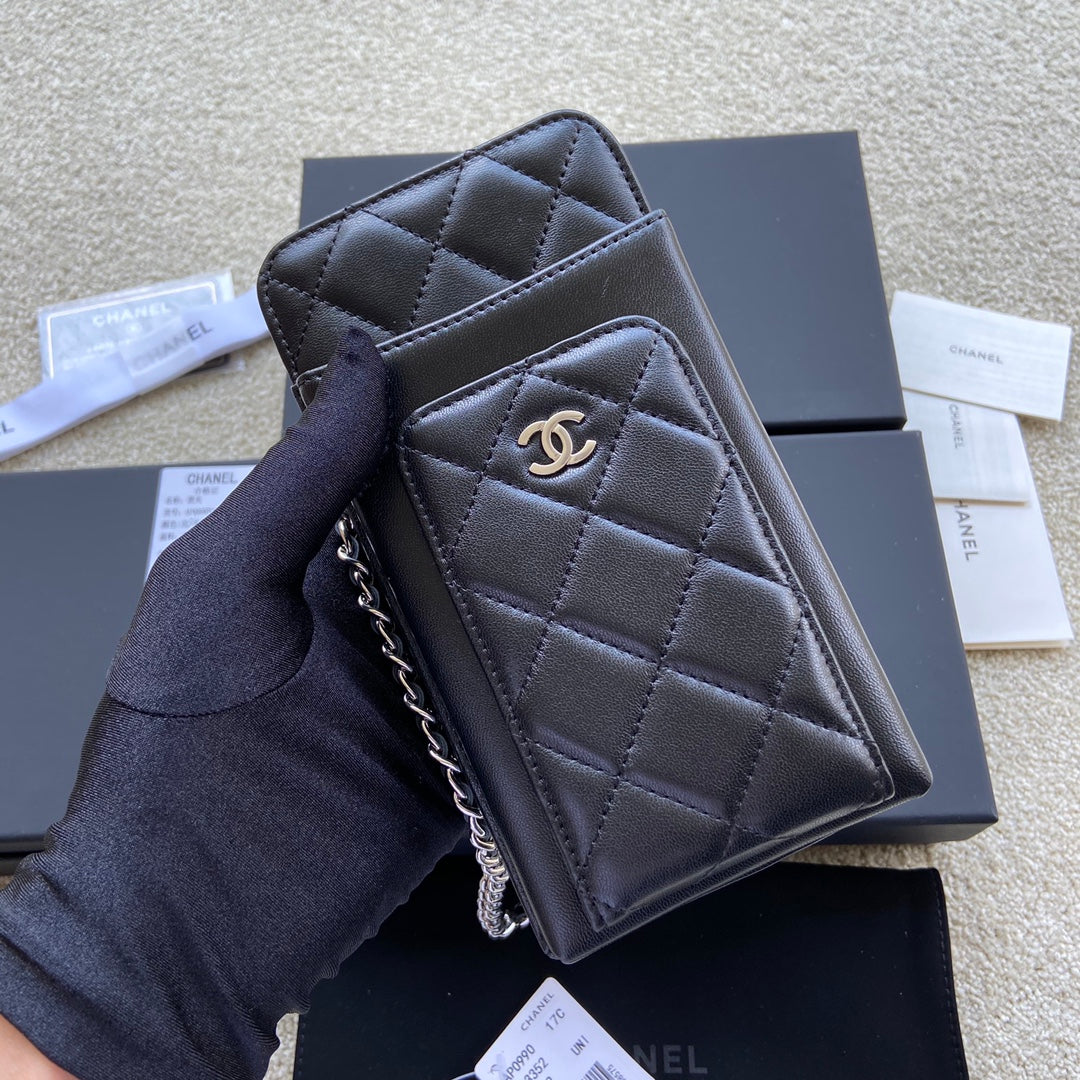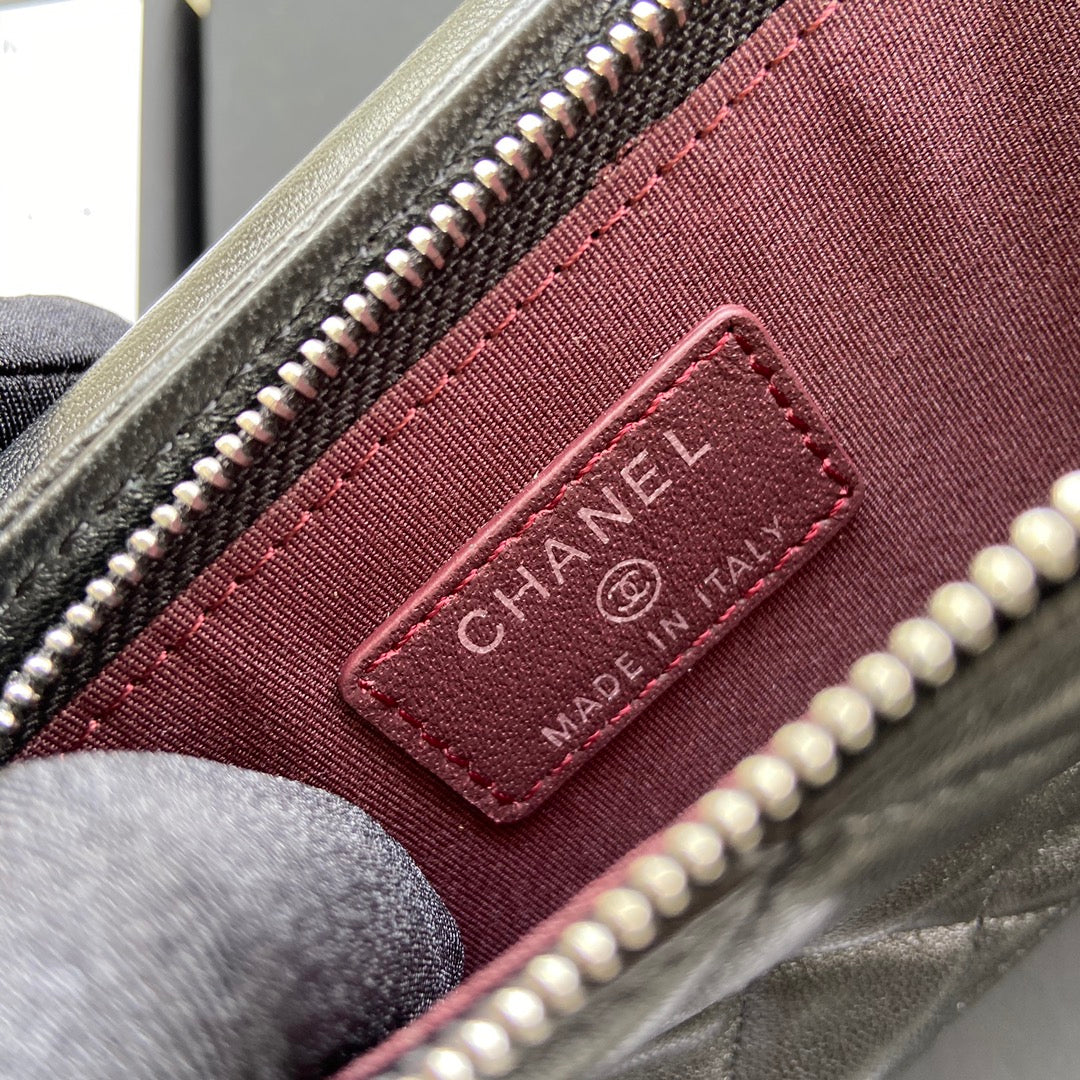 CC Compact Double Pouch Black Sheepskin Silver Steel 229645