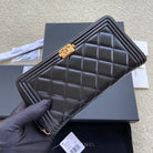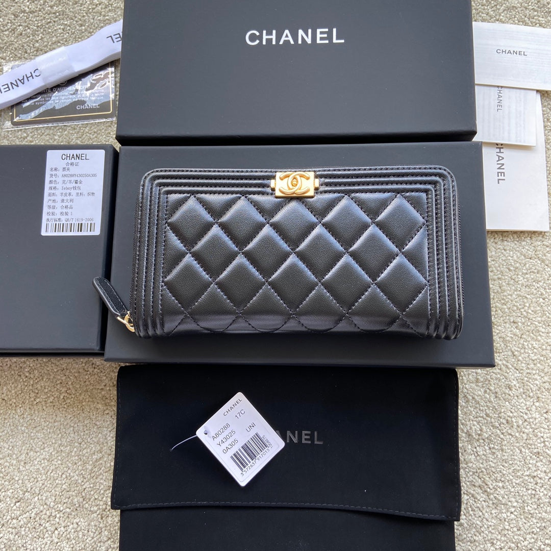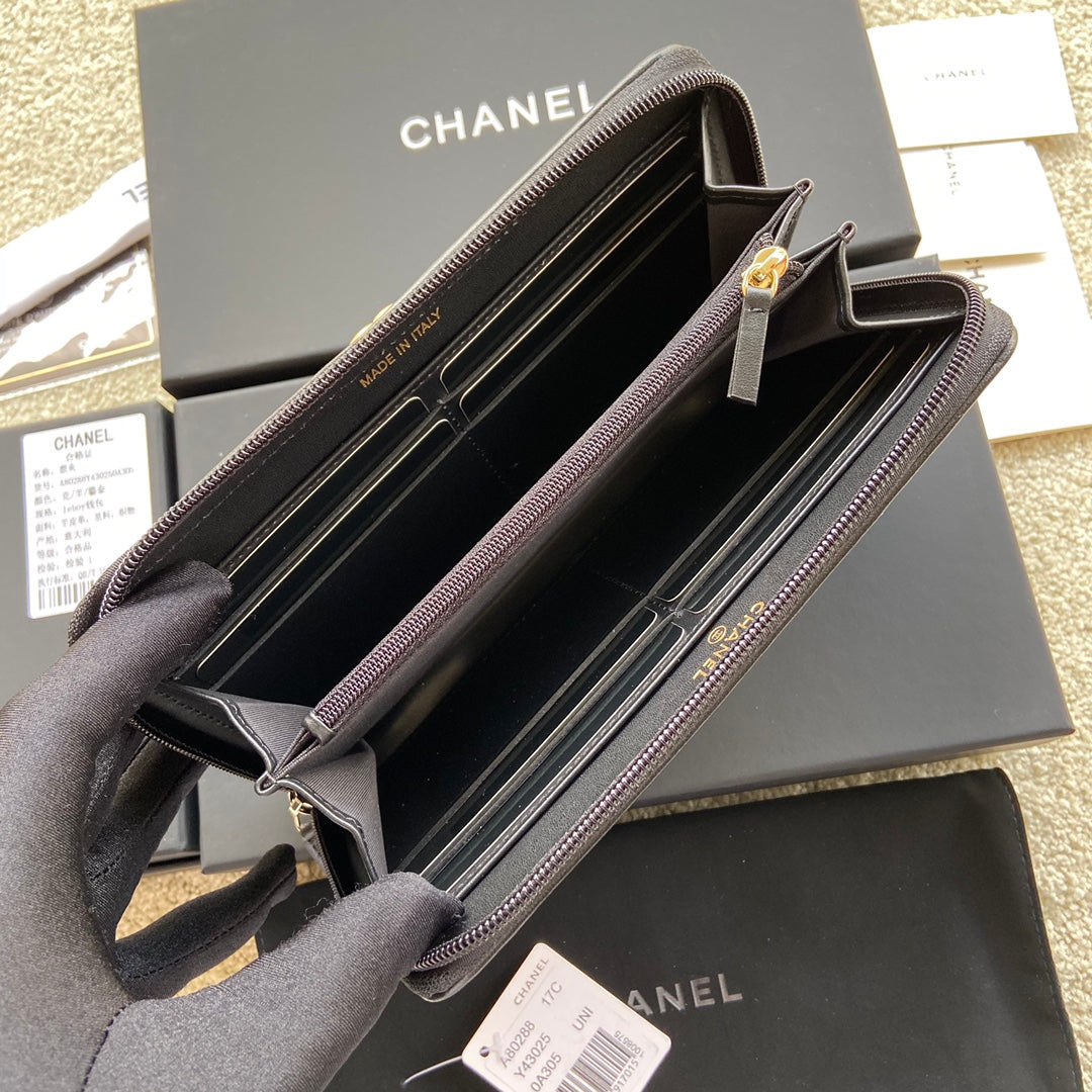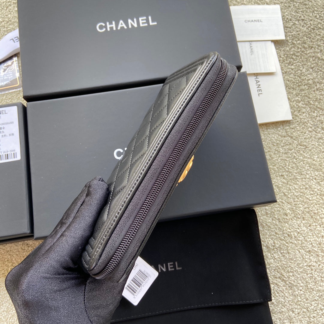 CC Gold Buckle Boy Zipper Coin Wallet Black Sheepskin 229737