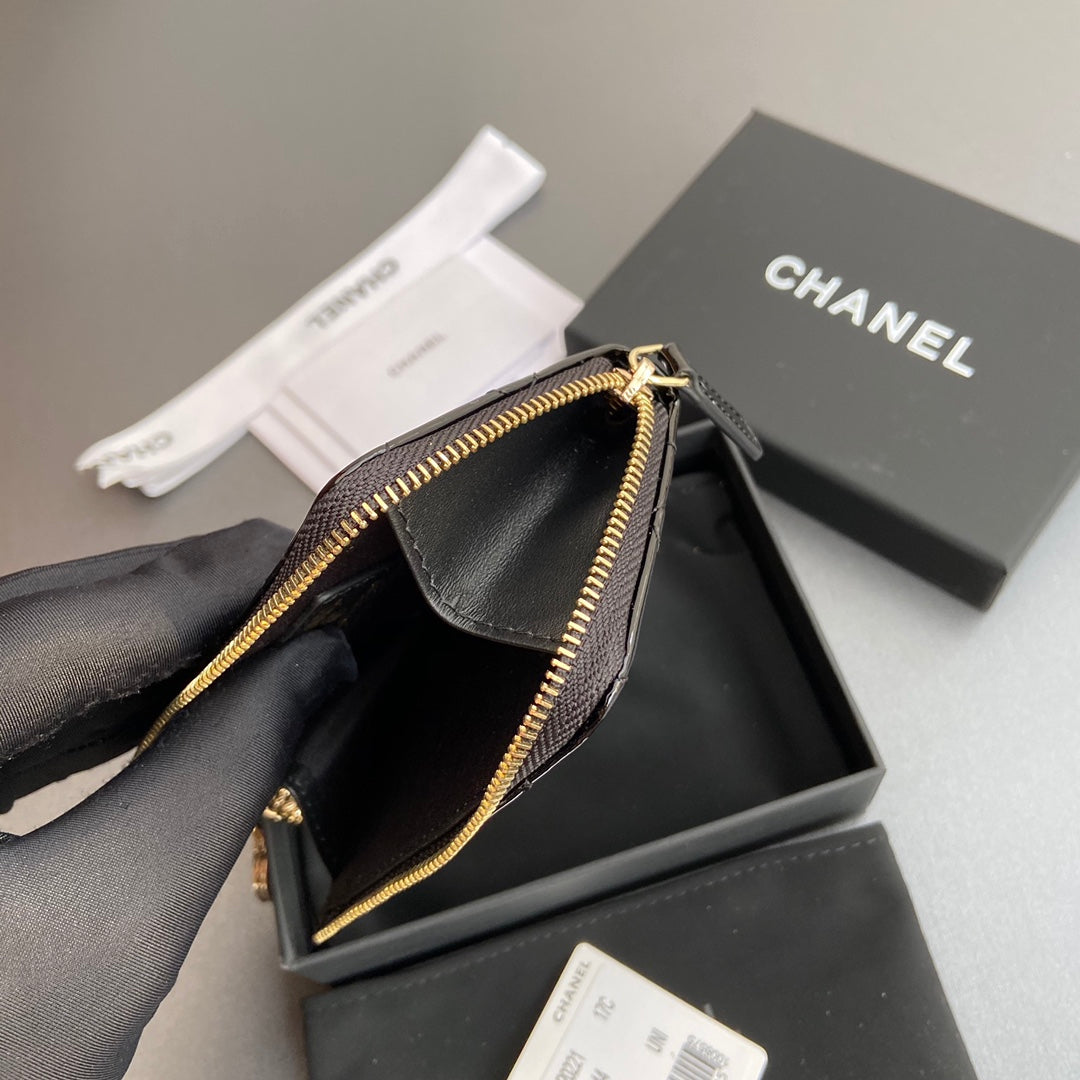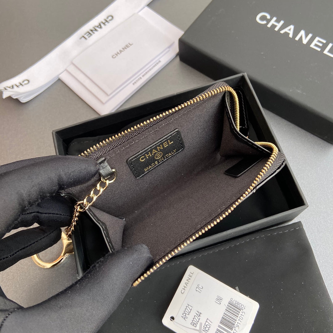 CC Hook & Chain Zipper Card Holder Black Patent GHW 234741