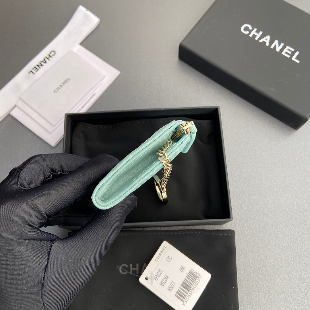 CC Hook & Chain Zipper Card Holder Light Blue Caviar GHW 234713