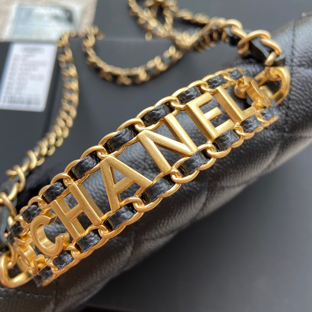 CC Woc 20cm Top Handle Black Grained Calfskin Gold Hardware