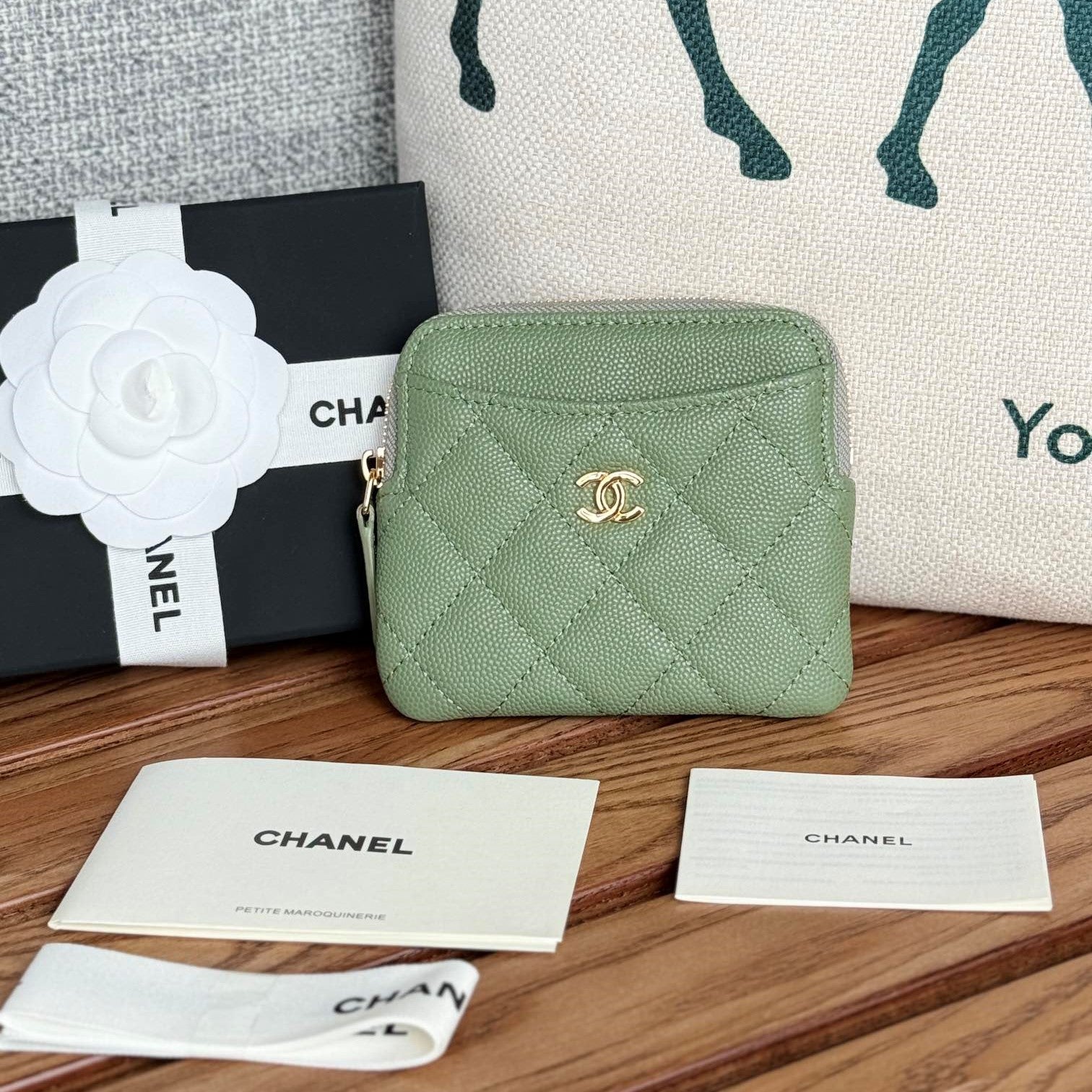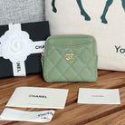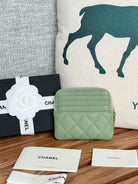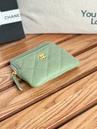 CC Zip Card Holder Wallet Olive Green Gold Metal Caviar 240599