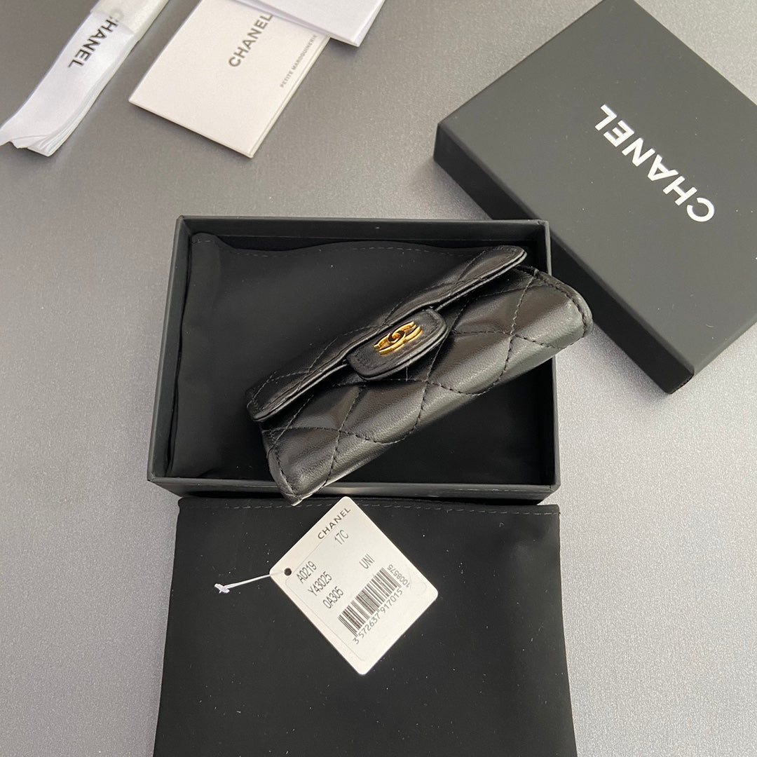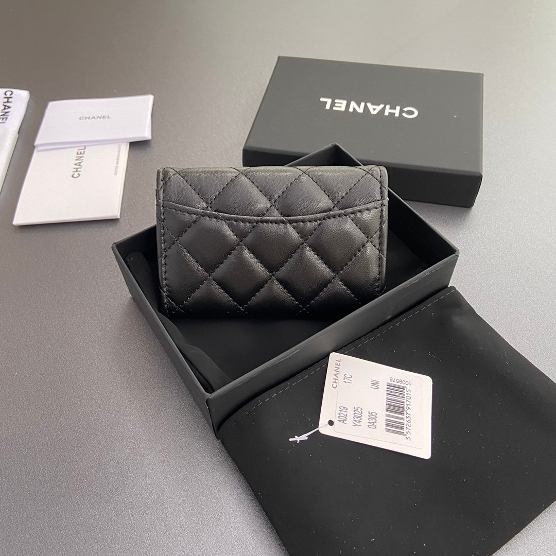 CC Zipper Flap Card Holder Black Sheepskin 234677