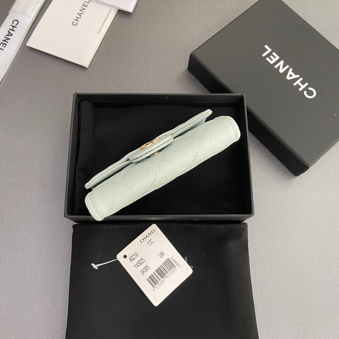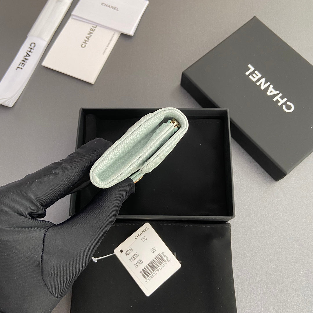 CC Zipper Flap Card Holder Light Blue Caviar GHW 234657