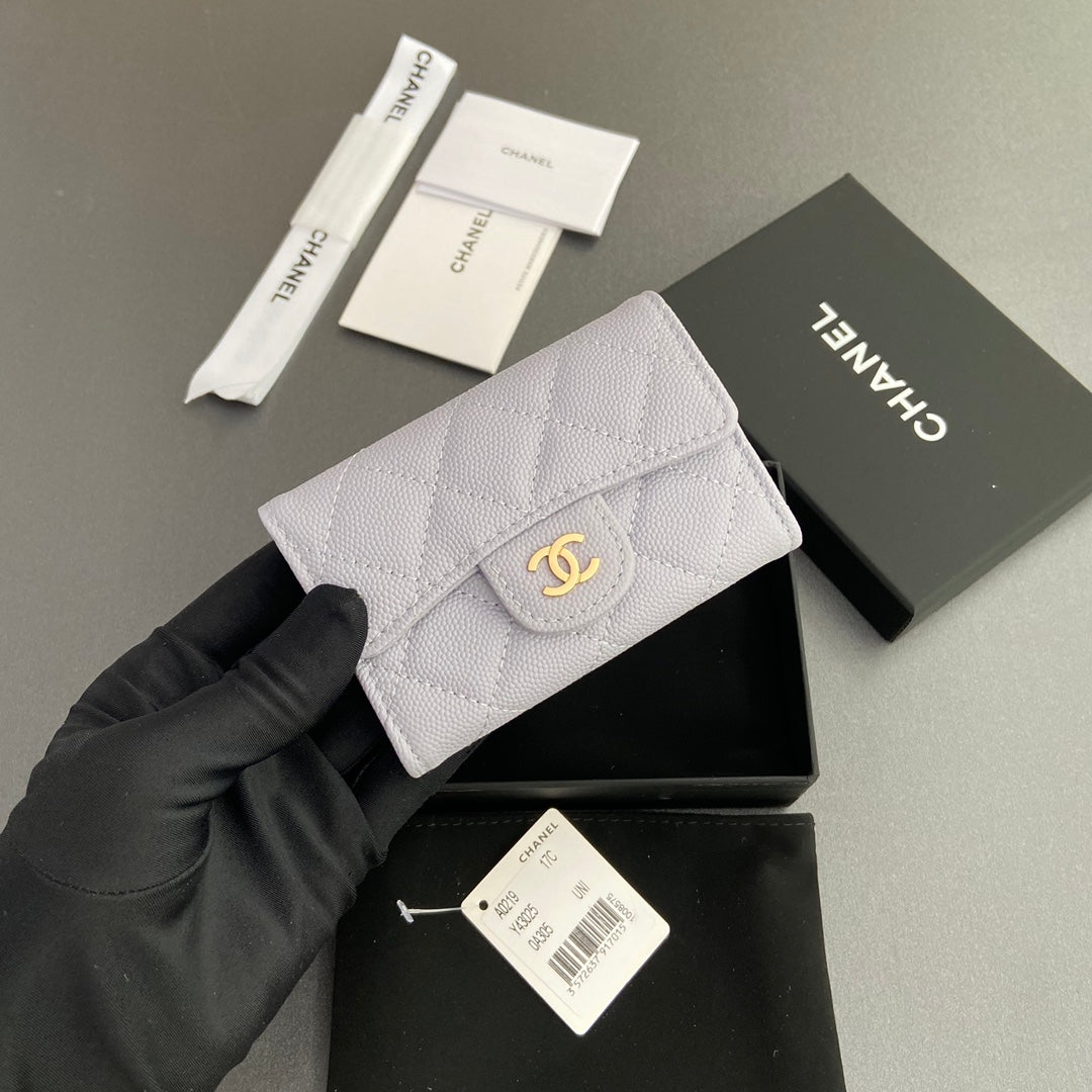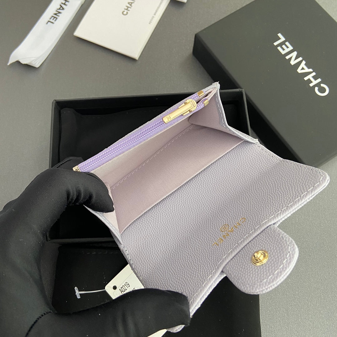 CC Zipper Flap Card Holder Light Purple Caviar GHW 234665