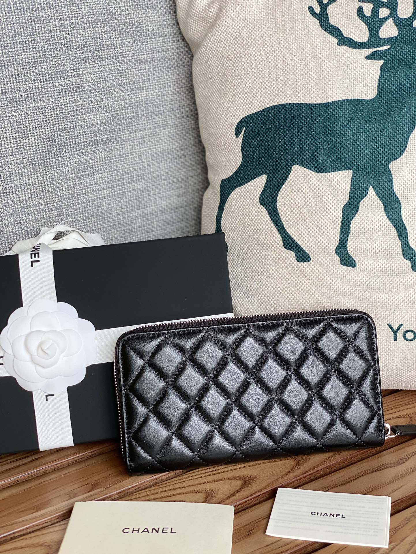 CC Zippy Long Wallet 19.5cm Black Sheepskin Sliver Steel 223943