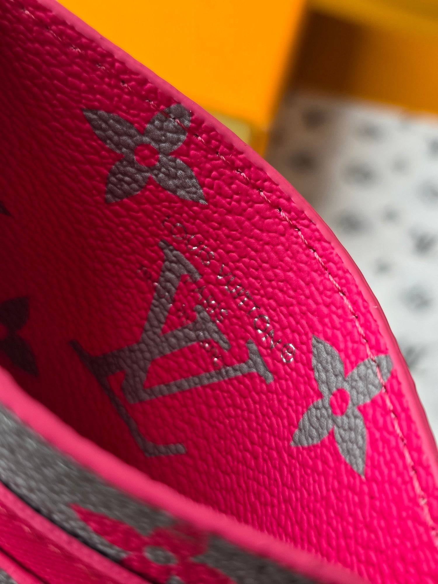 LV M14771 Double Card Holder Pink Gray Monogram Glow Canvas & Cowhide
