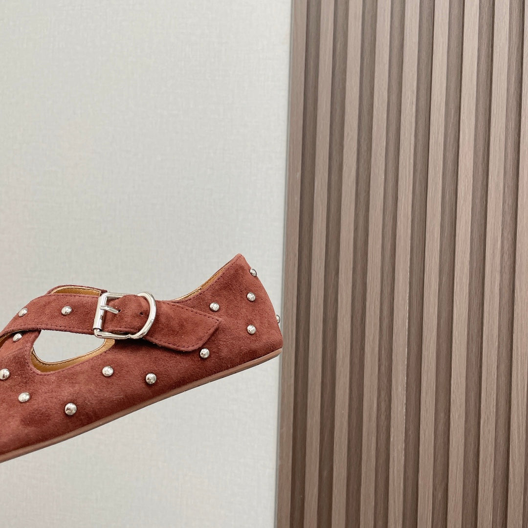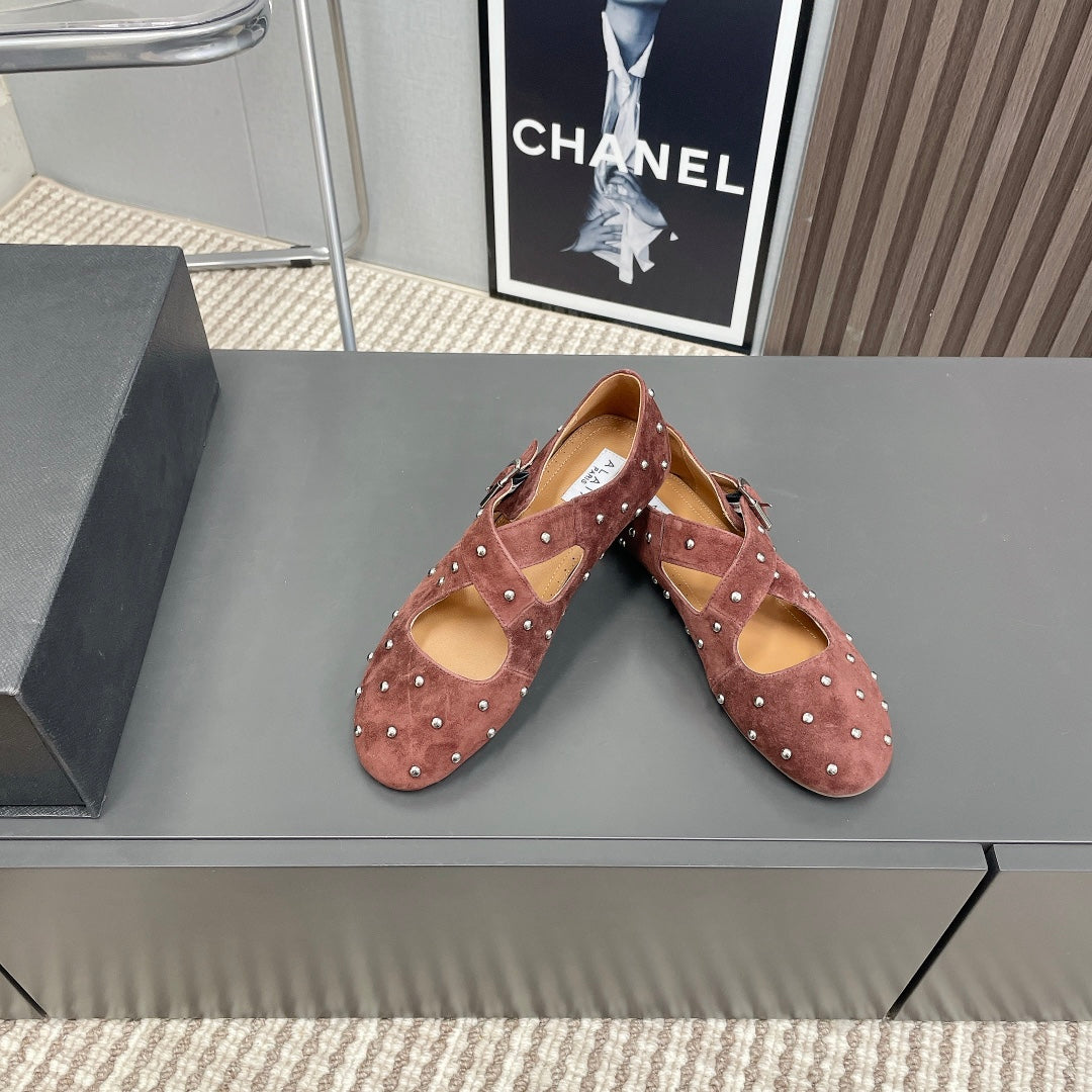 Alaia 2025 Criss Cross With Stud Ballet Flats Brown Beige Suede 293207