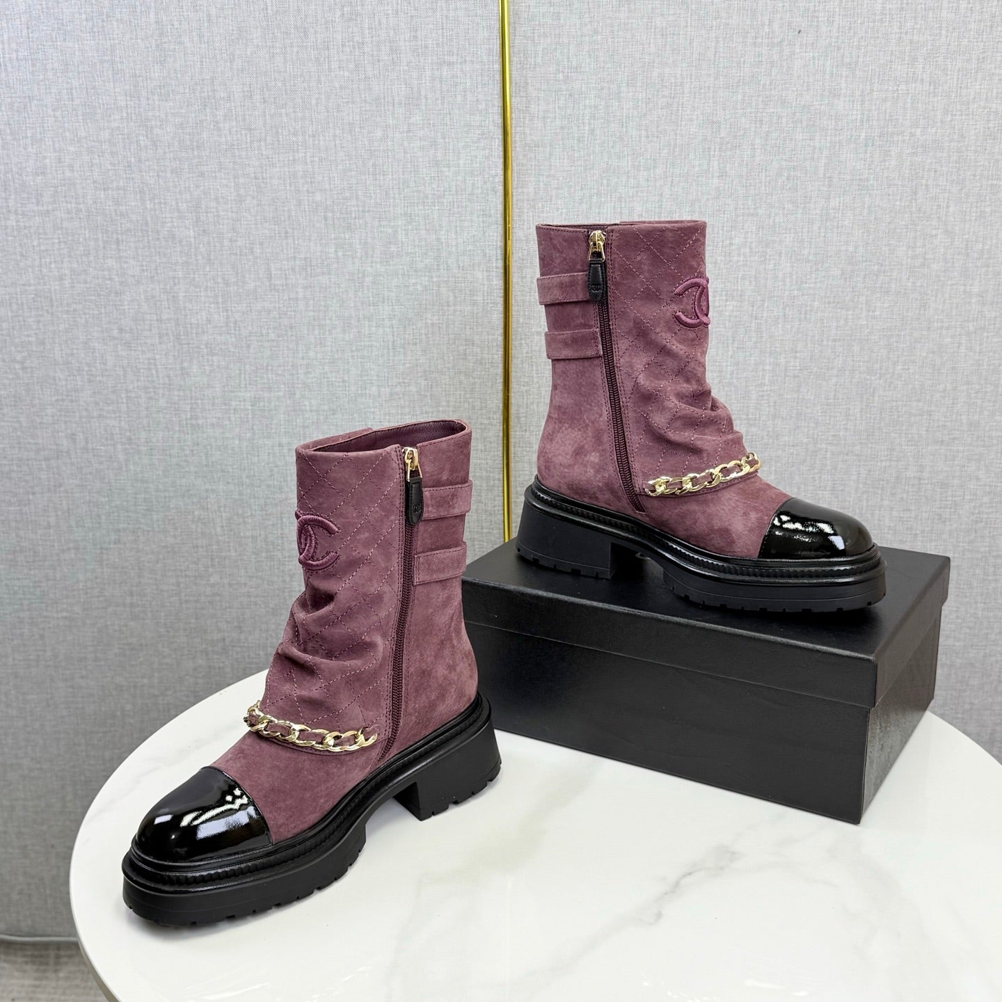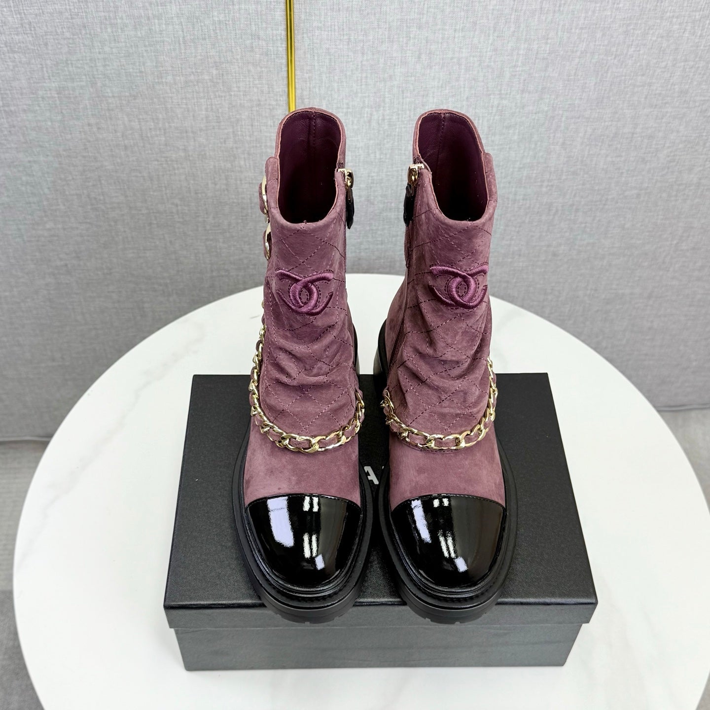 CC 25B AW Ankle Boots Old Rose Black Quited Suede Patent Leather 541068 GHW