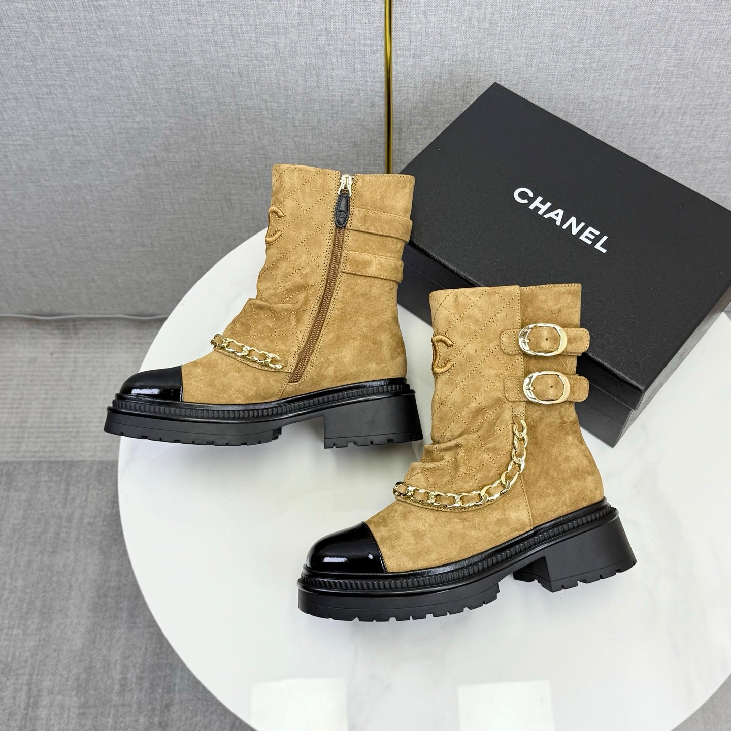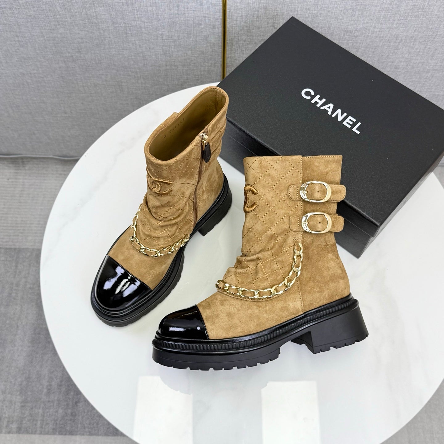 CC 25B AW Ankle Boots Black Brown Quited Suede Patent Leather 541069 GHW